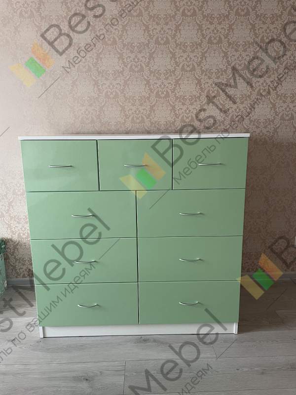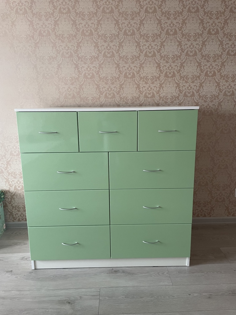 Собрали комод, который сами для себя придумали на основе имеющихся образцов с 9-ю выдвижными ящиками. Фасады с фрезеровкой выполнены и подогнаны очень хорошо. Рисунок был сложный, но все совпало и получилось очень красиво. Отдельное спасибо за нижнюю планку фасада на цоколь- получился единый рисунок и современный внешний вид. Есть замечания по глубине ящиков, т.к. в собранном виде ящики не доходят до задней стенке на 6 см. Как-то этот момент не согласовали. Думаю, сто можно было на 5 см точно увеличить глубину ящиков, что было бы функциональнее, т.к. комод это не только фасад, но и шкаф для вещей, постельного белья и Эти 5см я учитывала при выборе размера комода. Если проблема в фурнитуре, то можно было это обсудить. А так, нам теперь с этим жить. Ещё сборка тоже в некоторых местах не продумана ( центральные внутренние отверстия под симметричные направляющие почему-то одно сквозное. Получается, что направляющие с одной стороны прикрутили, а потом с другой стороны центральной стойки в те же отверстия нужно прикручивать с другой стороны направляющие. Шурупы ломаются друг о друга и конструкция кривая. Пришлось подгонять самим. Не хватило 2-х больших шурупов для сборки корпуса. Думаю, что лучше больше класть, чем меньше. Это уже 2-й наш большой заказ. В любом случае большое спасибо, что Вы воплощает наши мечты! Отдельное огромное спасибо инженеру-конструктору и мастеру по внешнему виду фрезеровки. Получилось ОГОНЬ!