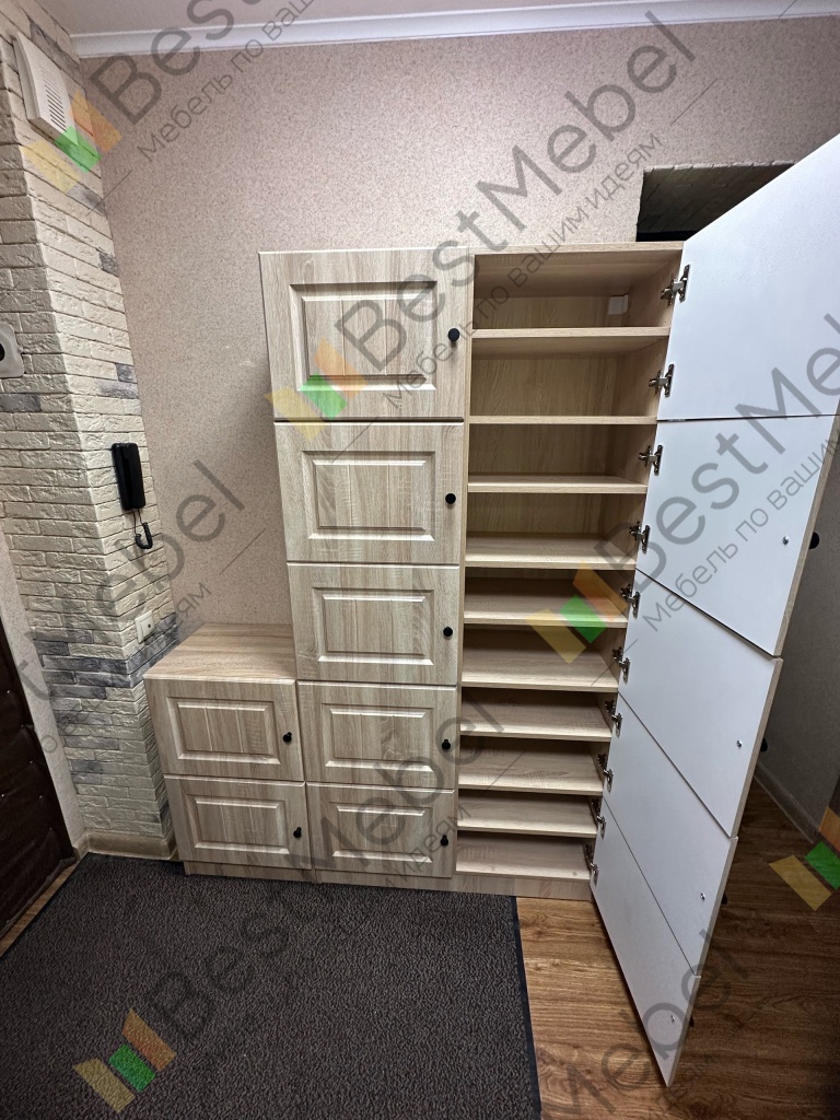 Выражаю огромнейшую благодарность BestMebel за данную обувницу. Очень долго искали и не могли найти подходящую, в которую можно было бы уместить вообще всю обувь целой семьи. Как обычно радуют возможностью выбора цвета и размеров, а также учитывают все пожелания клиента. Так, в моем заказе сделали крепление к стене, регулировку полок по высоте, скок под плинтус, и даже сделали дополнительную тумбу для обуви в идентичном дизайне. Оставшуюся мебель для прихожей также заказал здесь.