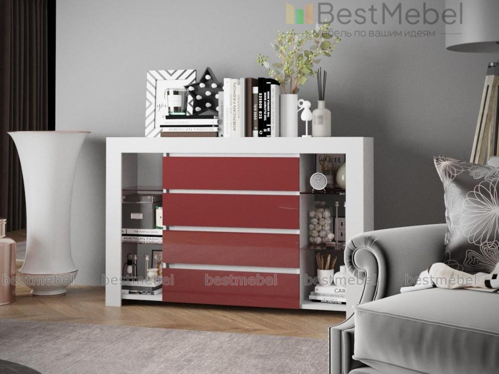 Роскошная модель обладает всеми достоинствами современной мебели. Комод Милан 4-SZ BMS максимально лаконичен по форме, эргономичен и выполнен из материалов высокого качества. Выдвижные ящики без ручек с матовыми фасадами соседствуют с открытыми стеклянными полками. Редкая вместительность, стильный вид и доступная цена обеспечивают комоду неизменную популярность у поклонников минимализма.