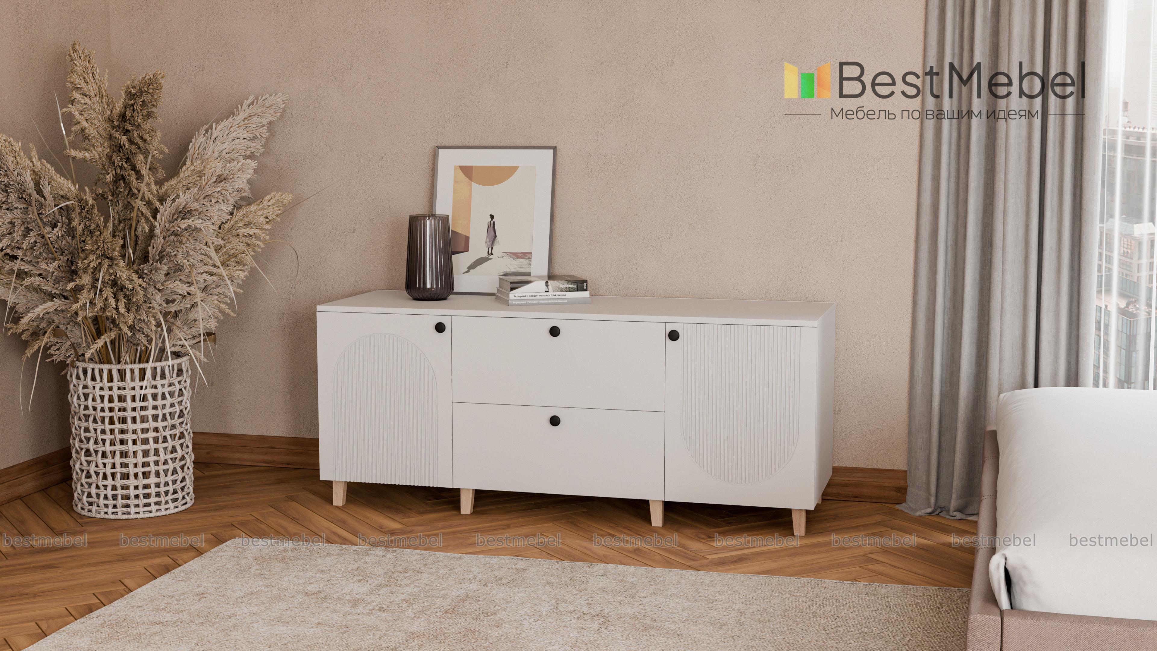 Комод Рене 5 BMS может использоваться для организации зоны ТВ, размещения интерьерных украшений и хранения. Модель современного дизайна с высокими ножками привлекает внимание стильной рельефной отделкой. Два глубоких ящика в центре и два распашных отделения по бокам помогут вам упорядочить хранение домашнего текстиля и всевозможных мелочей. Купить комод Рене 5 BMS в актуальных оттенках и любом удобном размере вы сможете на сайте нашего интернет-магазина.