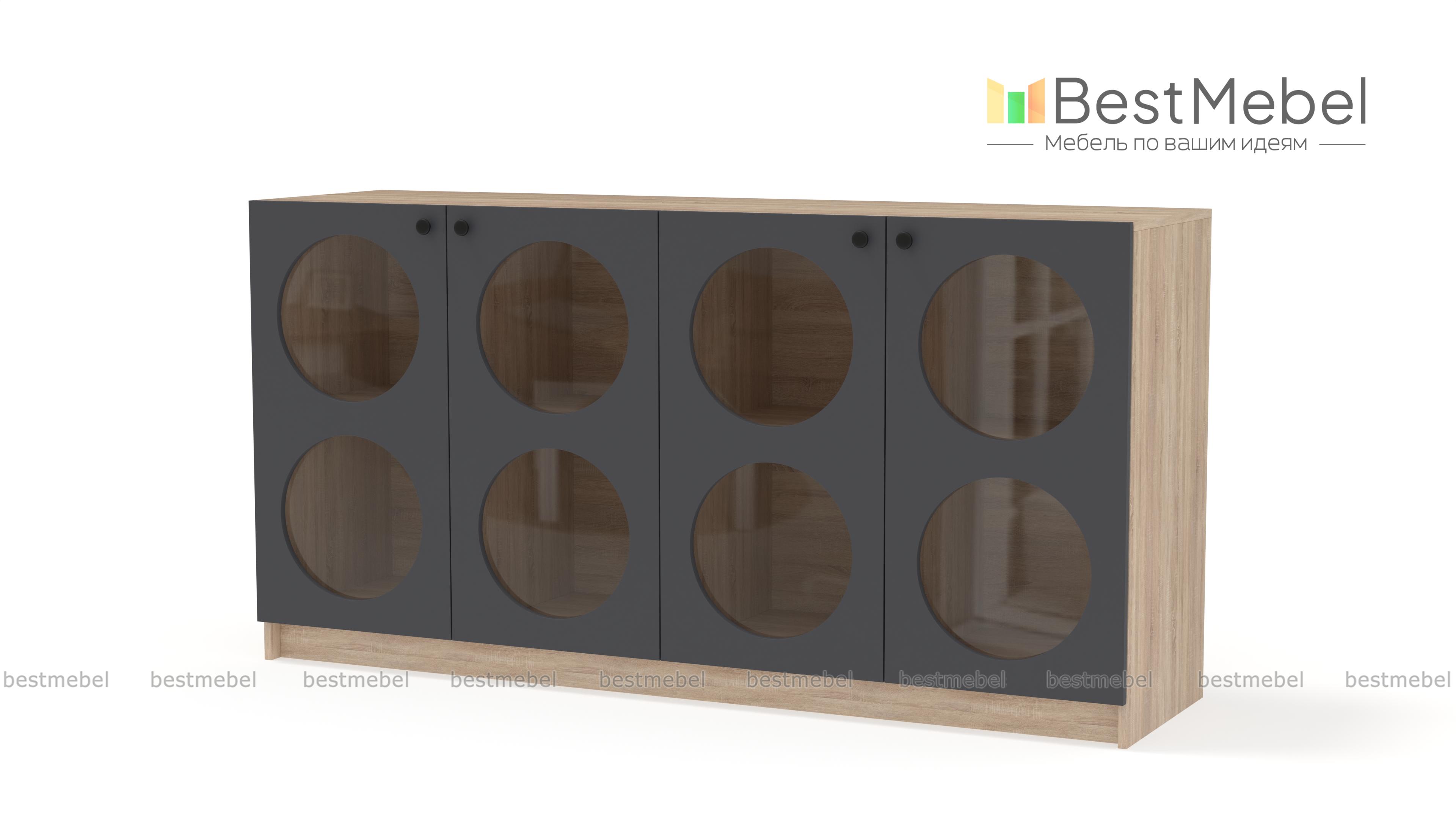 Комод Руди 2 BMS станет частью стильной обстановки в гостиной, спальне или детской комнате. Широкий и вместительный, комод представляет собой витрину с геометрическими вырезами. Разделенное полками, внутреннее пространство идеально подходит для хранения книг и посуды, игрушек и коробок с мелочами, а дверцы имеют удобную распашную конструкцию. Купить комод Руди 2 BMS вы сможете в нашем интернет-магазине, подобрав оптимальные размеры, оттенки и фурнитуру.