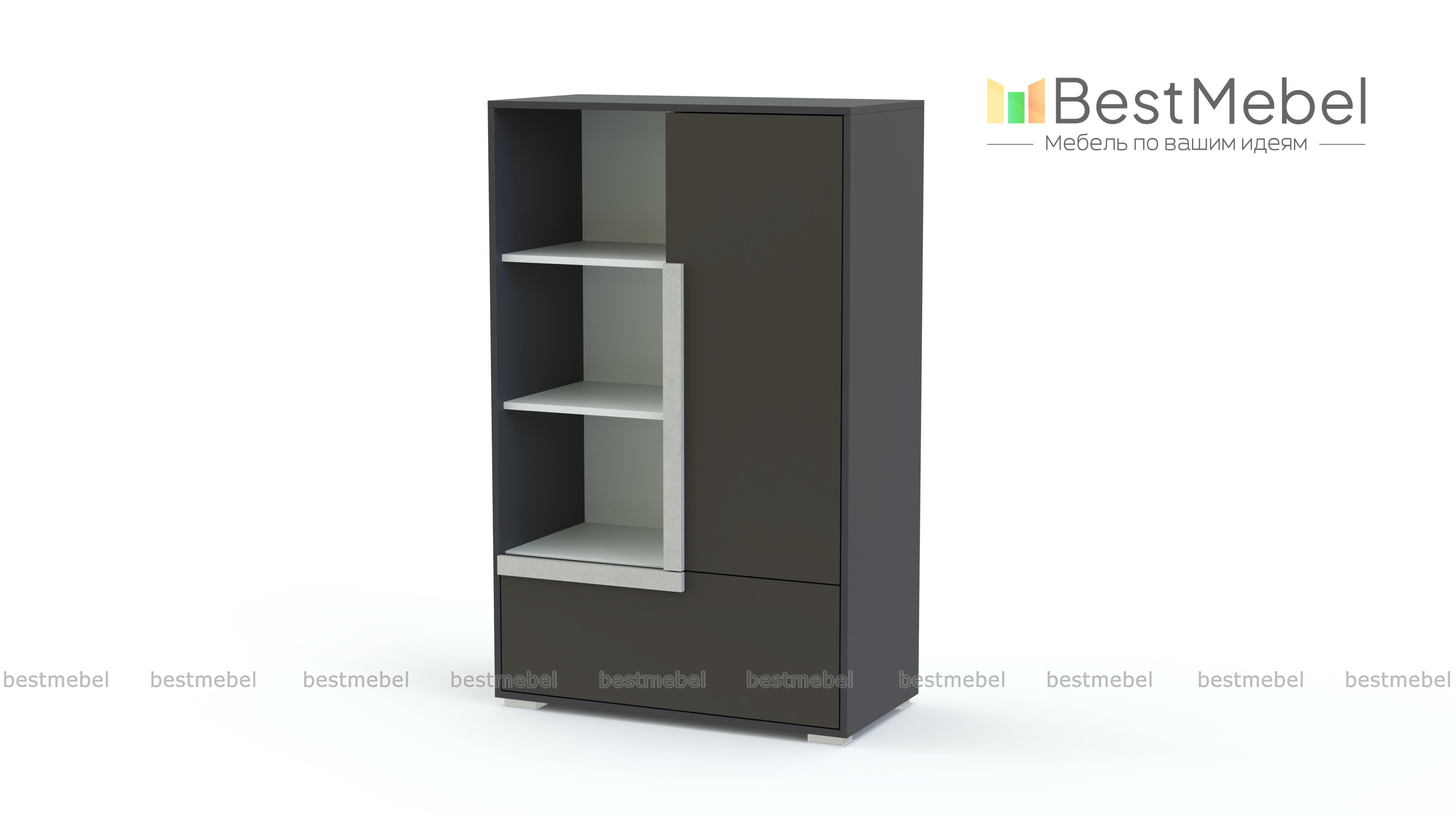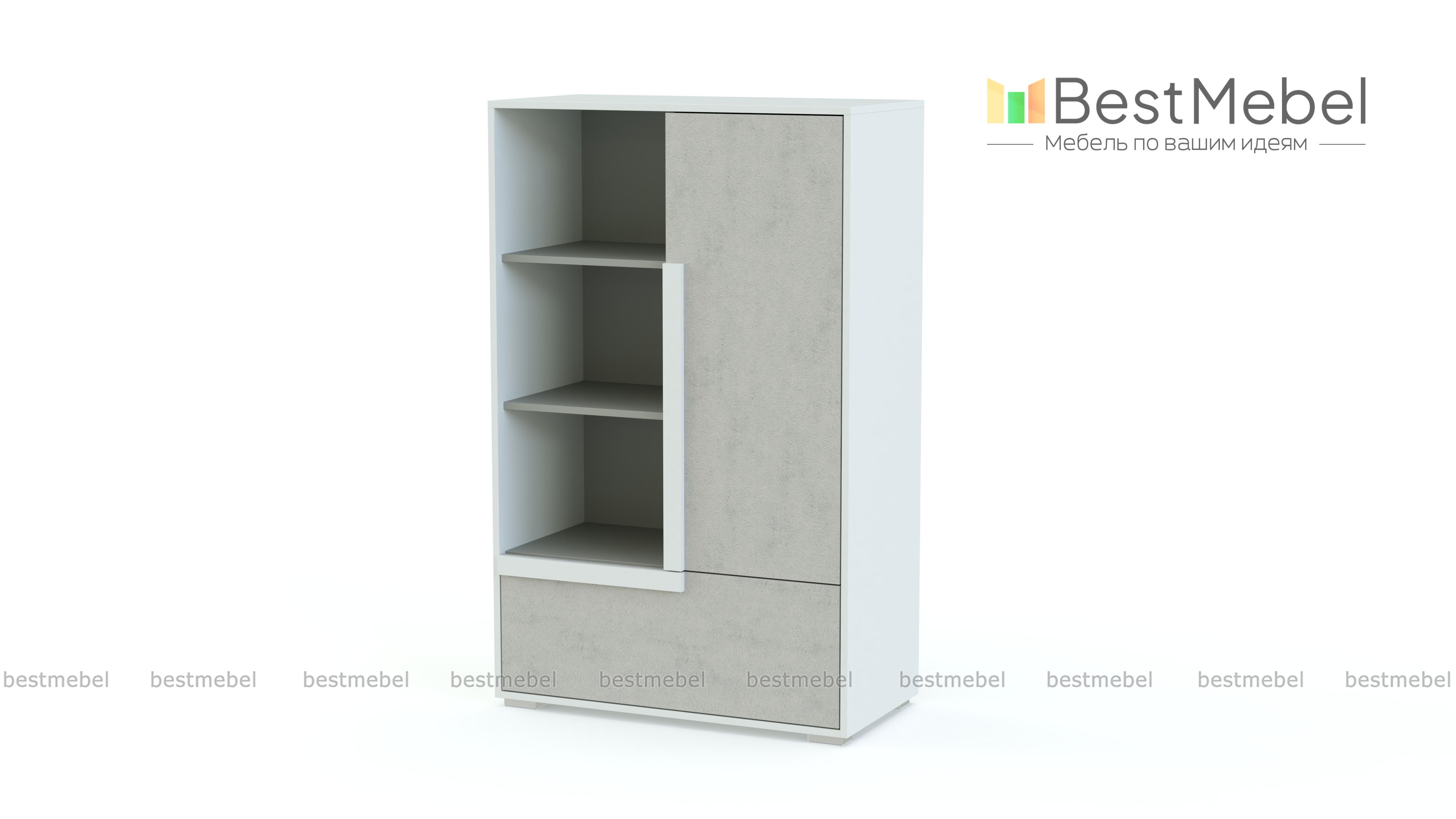 Комод с книжными полками Икар 12 BMS может стать полноценной заменой шкафу в интерьере современной молодежной комнаты. Комбинированная высокая модель оборудована распашным отделением, выдвижным ящиком в основании и открытыми книжными полками. Выполненный из безопасных материалов высокого качества, комод порадует подростков креативным дизайном и стильным сочетанием оттенков серого, древесных, белого и накладок-ручек на выбор. Купить комод с книжными полками Икар 12 BMS вы сможете в нашем интернет-магазине быстро и просто.