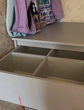 Заказ #893342 - очень довольны комодом, заказывали по своим параметрам. Очень удобно, что выбрать можно все,каждую мелочь - цвета фасадов и корпуса, тип фурнитуры, скосы под плинтус - все подогнали под себя! Комод основательный, крепкий, не хлипкий - прослужит долго! Из минусов - по схеме очень трудно собирать, хотелось бы инструкцию хотя бы небольшую) в остальном - полный восторг)