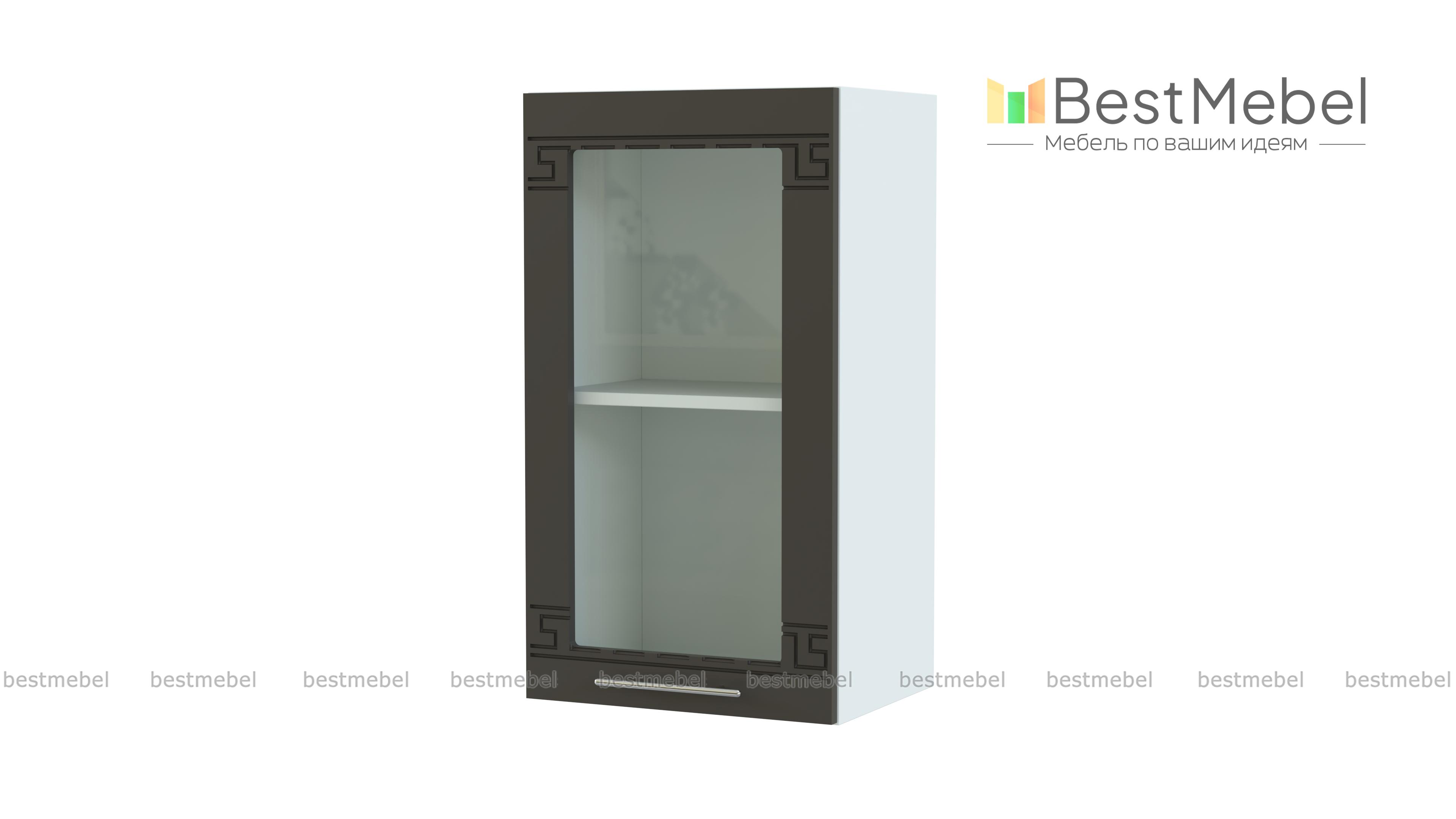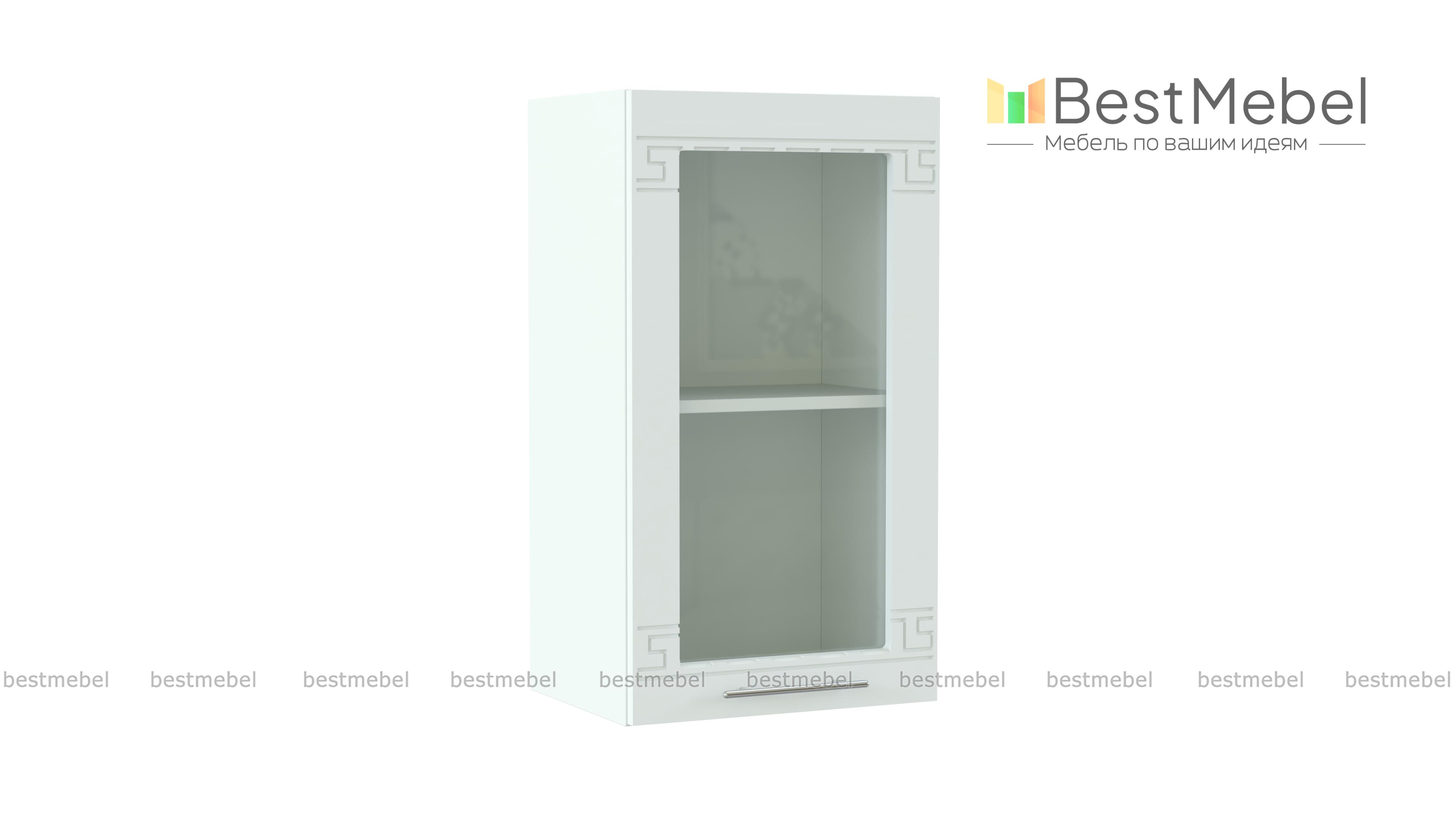 Шкаф навесной со стеклом 1 дверь Греция BMS – компактная модель, которая без труда впишется даже в малогабаритные кухни. Распашной шкафчик с застекленной дверцей предназначен для хранения посуды, хрупких предметов, чая и кофе. Матовый фасад с орнаментом и изящной ручкой выполнен в едином для всей модульной серии стиле и станет гармоничным дополнением комплекта. Купить шкаф навесной со стеклом 1 дверь Греция BMS для визуально легкого и практичного интерьера приглашаем недорого в наш интернет-магазин.