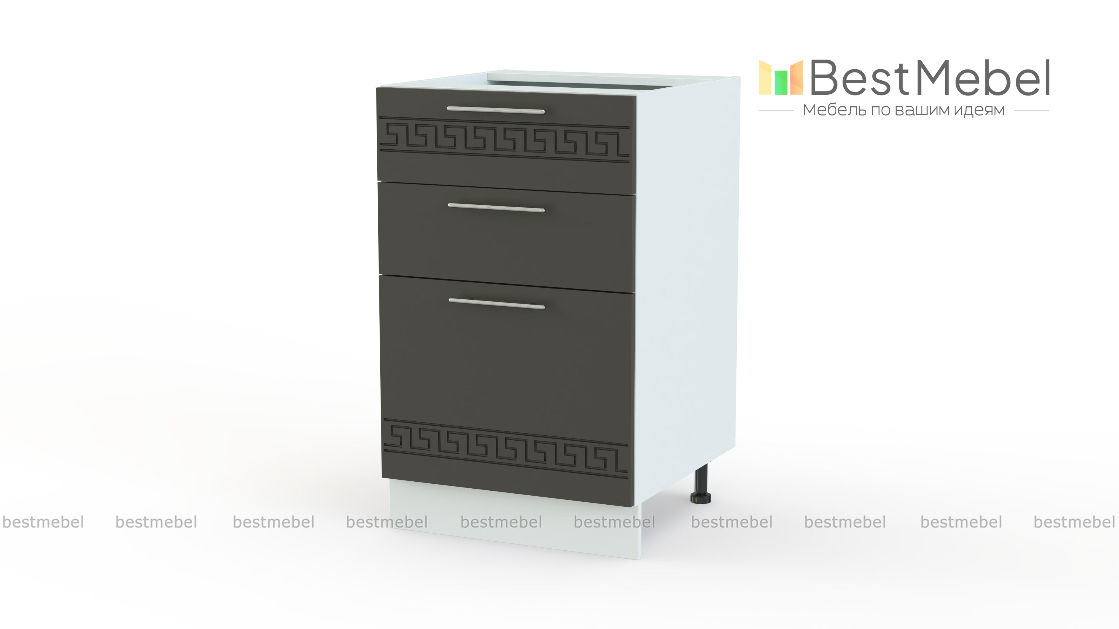 Заказ 00000938300, изделие ЭСКИЗ №00000938300 Тумба напольная 3 ящика Греция BMS (600х850х600) Отличное качество. Стильно смотрится. Цвет в тему. Заказал всю кухню в свою маленькую хрущевку. Фарнитуру подсказали менеджеры. Все ходит плавненько