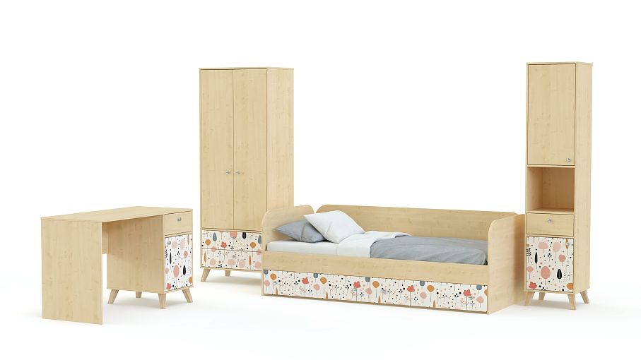 Детская комната Эльза 5 BMS — это готовое интерьерное решение в современном стиле. В комплекте есть все необходимое для учебы, отдыха и хранения вещей ребенка: письменный стол, кровать с бельевыми ящиками, компактный гардероб и книжный стеллаж. Легкий уютный дизайн создают теплые оттенки, силуэты с высокими сканди-ножками и симпатичный декор в технике фотопечати. Купить детскую комнату Эльза 5 BMS в необходимых размерах и оттенках из нашего каталога вы сможете на сайте интернет-магазина.