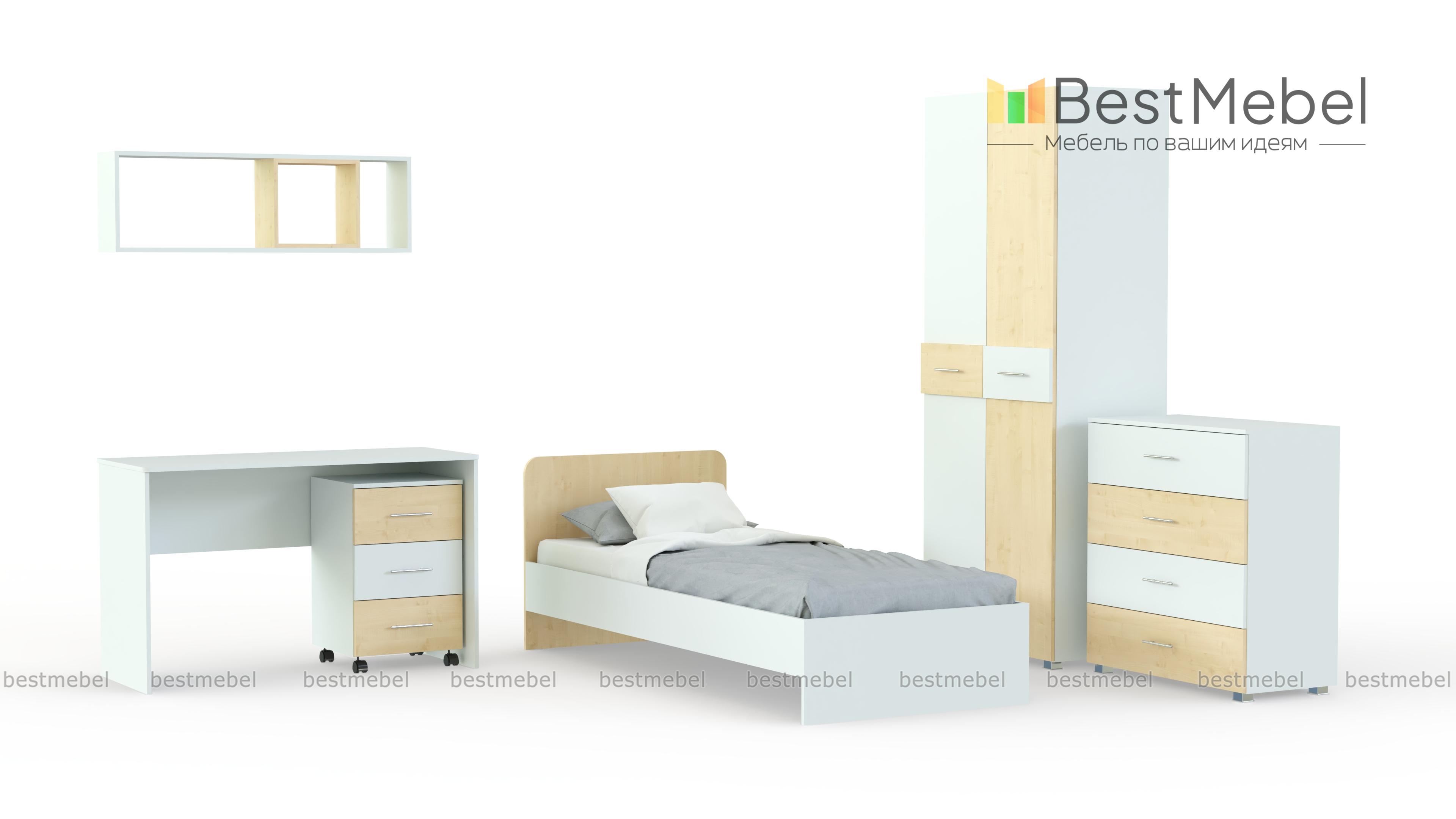 Детская Лайк BMS поможет обустроить яркую и комфортную комнату. Светлые древесные тона с белыми вставками создают позитивную атмосферу для учебы и отдыха и оптимальны для интерьера детской,. В комплект входят письменный стол с практичной выкатной тумбой, навесная полка, просторная кровать без спинки в изножье, комод с выдвижными ящиками для белья и комбинированный двухдверный шкаф для аккуратного размещения гардероба. Купить детскую Лайк BMS недорого и быстро вы сможете в нашем интернет-магазине.