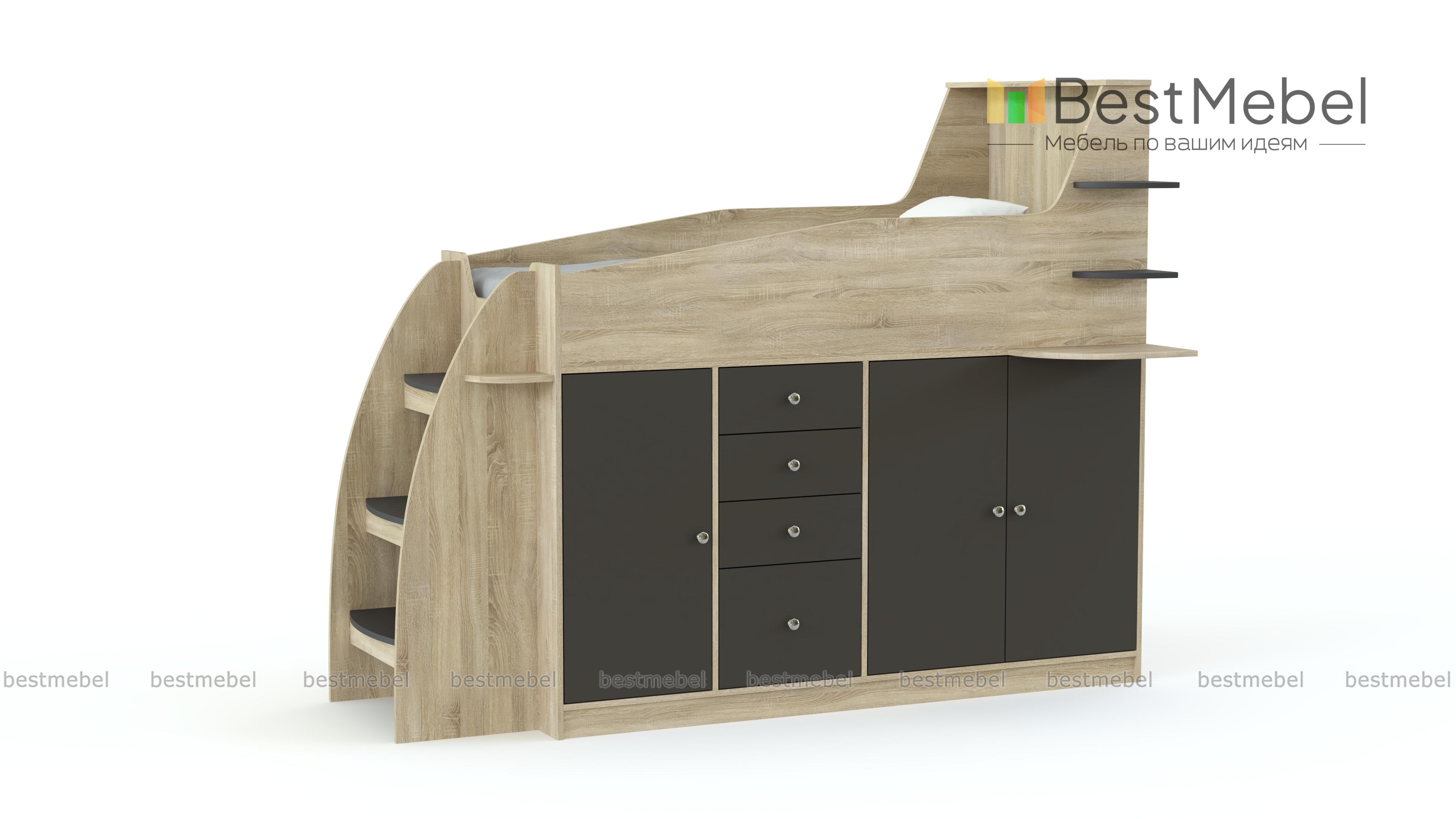 Кровать-чердак Коста 3 BMS отличается оригинальным дизайном и станет частью игровой зоны в современной детской. Модель оборудована уютным спальным местом с защитными бортиками и полочками для мелочей, устойчивой лестницей с широкими ступеньками, распашными шкафчиками для белья и одежды и выдвижными ящиками. Яркое цветовое решение непременно понравится детям, а безопасность обеспечат скругленные углы. Купить кровать-чердак Коста 3 BMS приглашаем в наш интернет-магазин по лучшей цене.