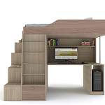 Кровать-чердак Маркиз 11 BMS великолепный проект, где продумано расположение каждого элемента, создающий комфортное пространство. Здесь реализованы несколько зон: спальное место наверху, стол для занятий, система хранения. Постель защищена бортами 32 см, габариты 80 х 190 см. Столешница скошенной формы для удобного сидения, вверху полка, сбоку – тумба. Лестница с хромированными ступенями в виде трубок и ящиком. Есть шкаф, в котором легко можно разместить необходимые для ребенка вещи. Каркас сделан из ЛДСП 16 мм, торцы защищены кромкой. В цветовом решении комбинируется два оттенка на выбор.
