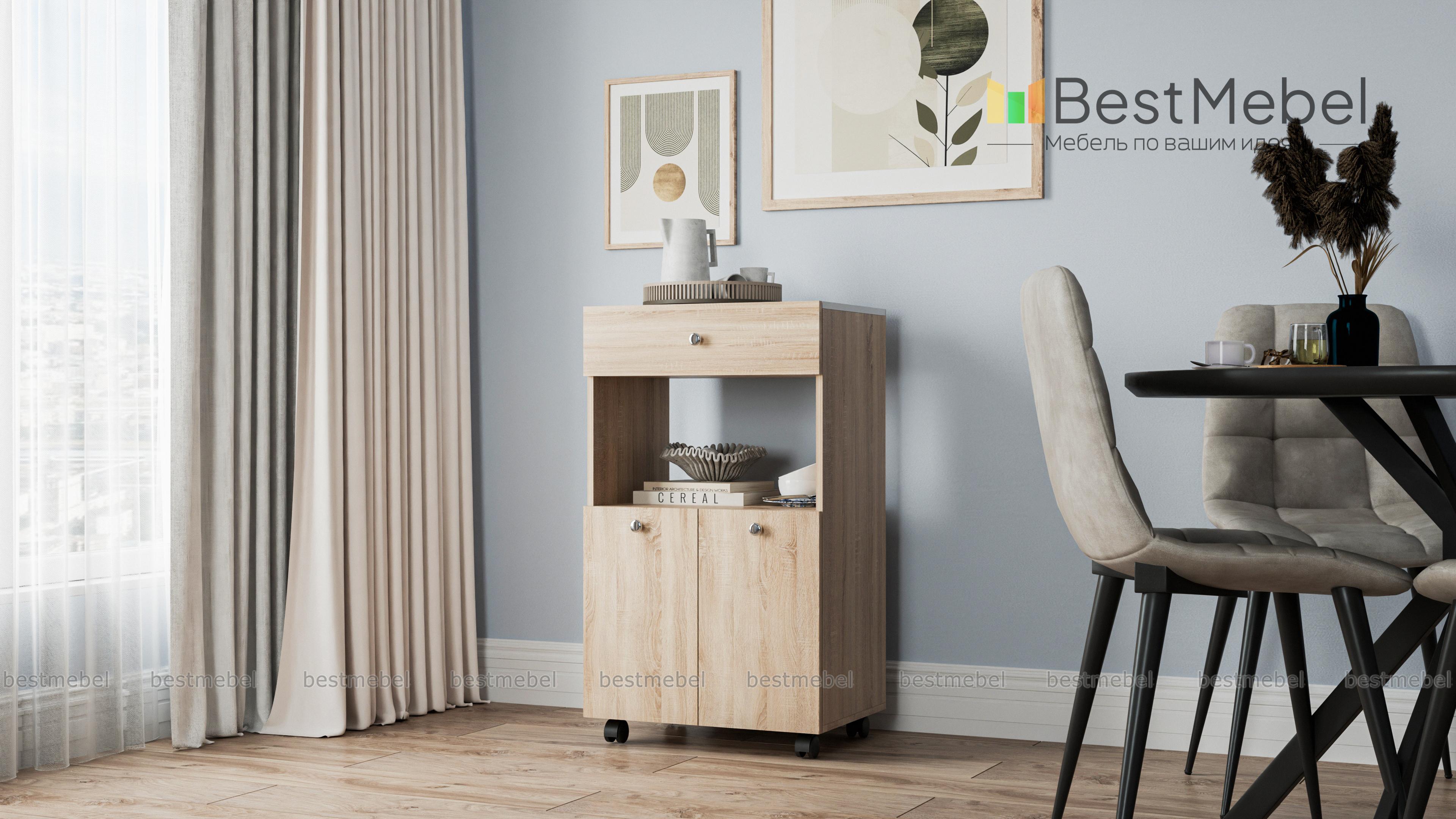 Буфет D6 BMS – оригинальная модель для малогабаритных кухонь. Мини-буфет практически не занимает места, а простоту передвижения в случае необходимости обеспечат колесики. Продуманная конструкция объединила все самое необходимое – распашное отделение, выдвижной ящик и нишу. Дополнительной рабочей поверхностью станет столешница. Выполненный в белом цвете с элементами древесных тонов и крупными ручками оттенка металлик, буфет гармонично впишется в современную меблировку. Купить Буфет D6 BMS по приятной цене приглашаем в наш интернет-магазин.