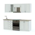 Элегантный комплект в классическом стиле Николь 1500 BMS сделает размещение кухонных принадлежностей удобным, а готовку приятной. Прямая форма и нейтральные цвета легко впишутся в самый разный интерьер, легкий декор и оригинальная фурнитура придадут ему особое очарование. Три нижних модуля и три навесных включают распашные отделения и выдвижные ящики, благодаря которым необходимые вещи будут всегда под рукой. В нашем интернет-магазине вы сможете подобрать оптимальное цветовое сочетание фасадов и корпуса.