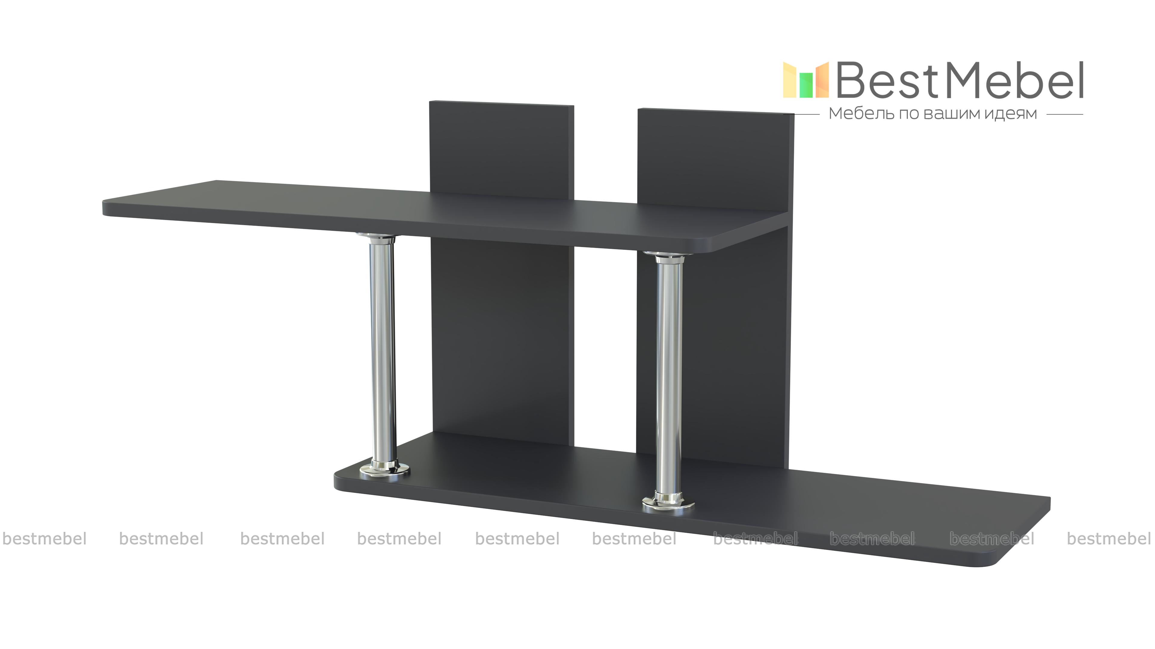 Полка навесная ПН-1 BMS изящна и проста в исполнении. Мебель офиса – лицо всей компании. Поэтому подбирайте достойные, привлекательные изделия. К таким качествам подходит представленная полка. Её лёгкая конструкция из двух полок, дополнена великолепными стойками. Благодаря им, полки, как будто, парят в воздухе. Некоторые книги или элементы декора, которыми гордится начальник, могут занять эти прекрасные ниши. На сайте предложено несколько оттенков для оформления изделия. Купить полку навесную ПН-1 BMS можете в интернет-магазине Бэст Мебель Шоп по низкой цене.