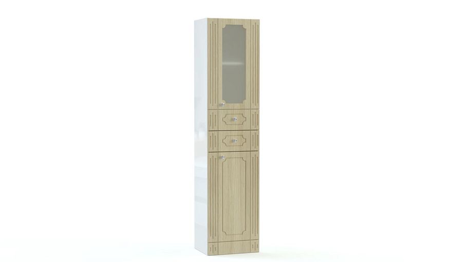 Пенал в ванную комнату Франко 6 BMS поможет вам создать комфортный интерьер в классическом стиле. Комбинированная модель оборудована двумя распашными отделениями с полками – глухим и застекленным, а также выдвижным ящиком для хранения уходовых средств и аксессуаров. Фасад в нейтральном цвете, выполненный из износостойких материалов, украшен изящной фрезеровкой и визуально делает комнату светлее и просторнее. Купить пенал в ванную комнату Франко 6 BMS приглашаем в наш интернет-магазин.