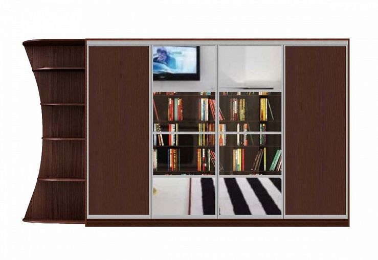 Шкаф-купе Денвер 3.2 BMS представляет собой вместительную четырехдверную модель, дополненную эффектно вырезанным торцевым стеллажом для важных мелочей и предметов декора. Оборудованный книжными полками за зеркальными дверцами со стеклянными вставками и глухими отделениями с фасадами в древесных тонах, шкаф оптимален для хранения домашней библиотеки и бытовых вещей. Купить Шкаф-купе Денвер 3.2 BMS и правильно организовать пространство гостиной вам поможет наш интернет-магазин.