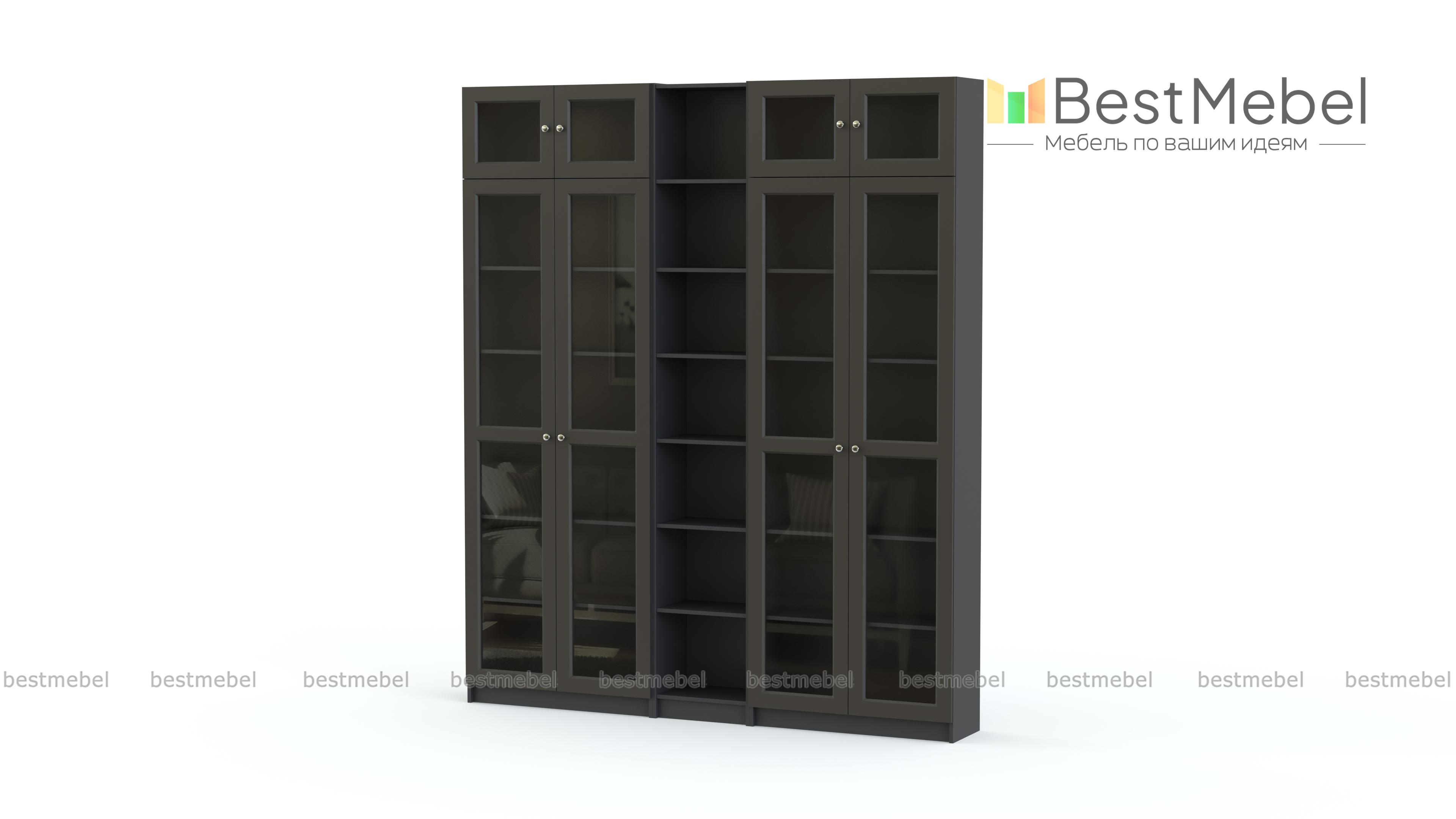 Шкаф Билли Оксберг Billy Oxberg 46 благодаря увеличенной высоте особенно вместителен. Композиция из двух распашных витрин и стеллажа дополнена антресольными секциями. Многофункциональный шкаф заменит громоздкие закрытые конструкции в современных гостиных и эстетично разместит домашнюю библиотеку, посуду, интерьерные вещицы и бытовые мелочи. Купить шкаф Билли Оксберг Billy Oxberg 46 и эффективно использовать пространство вам всегда поможет наш интернет-магазин. Выбирайте мебель в стиле IKEA (ИКЕА) от производителя BestMebelShop!