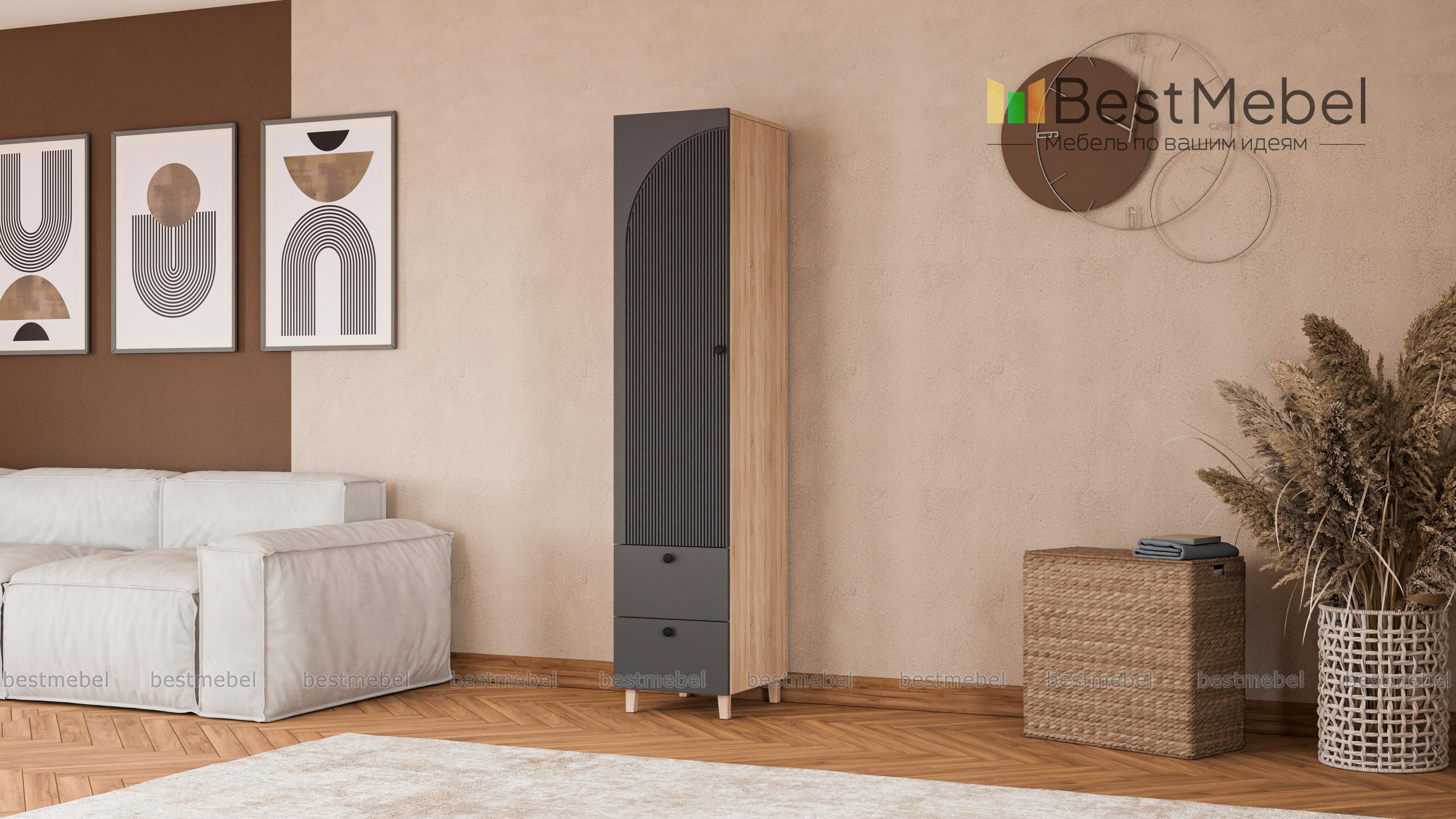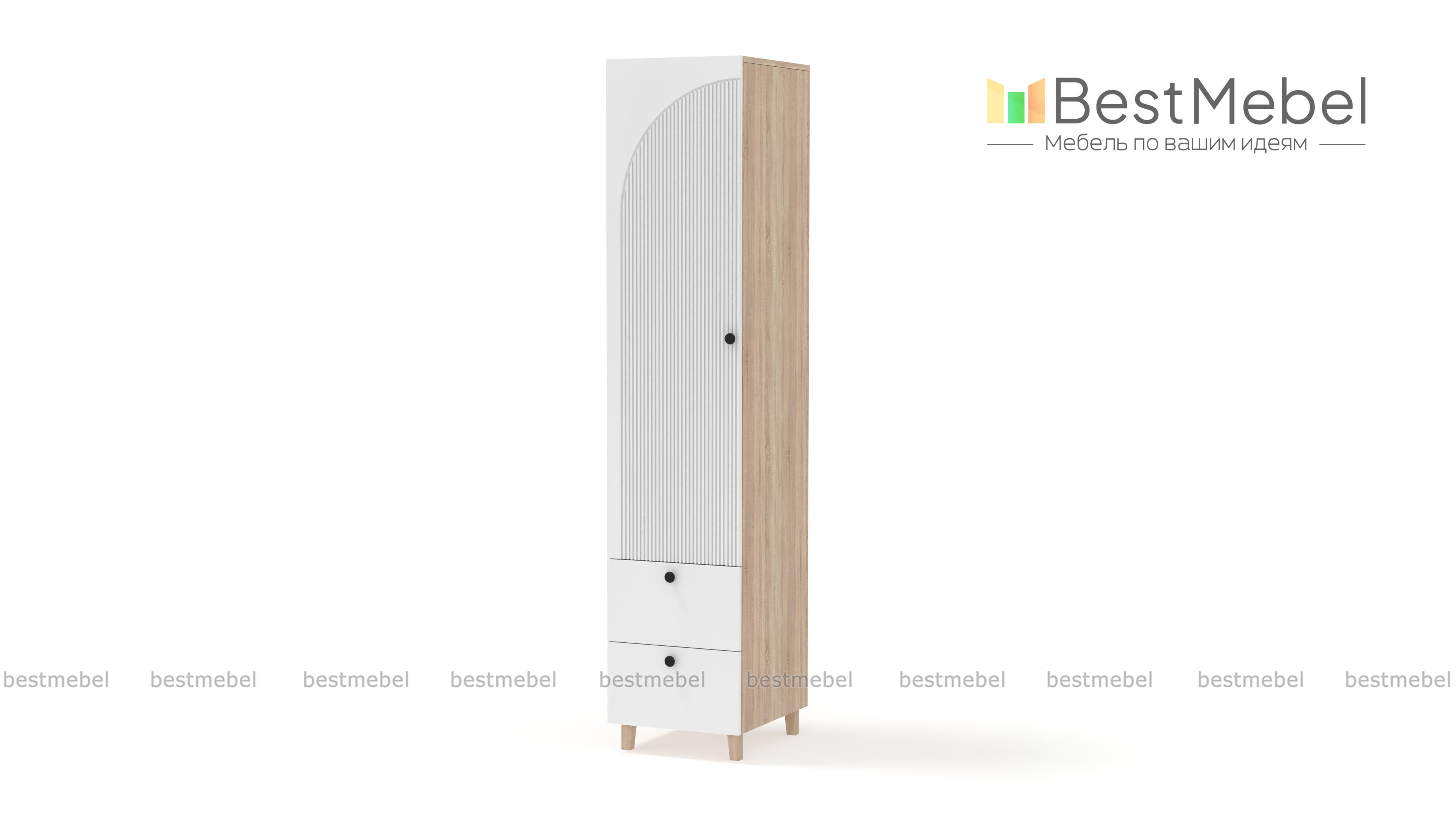 Шкаф-пенал Вивьен 4 BMS может использоваться как часть комплекта или самостоятельный предмет обстановки спальни, гостиной или прихожей. Стильный пенал с высокими ножками выполнен из ламинированной плиты и МДФ с рельефной отделкой. Помимо основного распашного отделения модель укомплектована парой выдвижных ящиков для хранения мелких вещей. Купить шкаф-пенал Вивьен 4 BMS приглашаем в наш интернет-магазин с изготовлением по индивидуальным размерам.