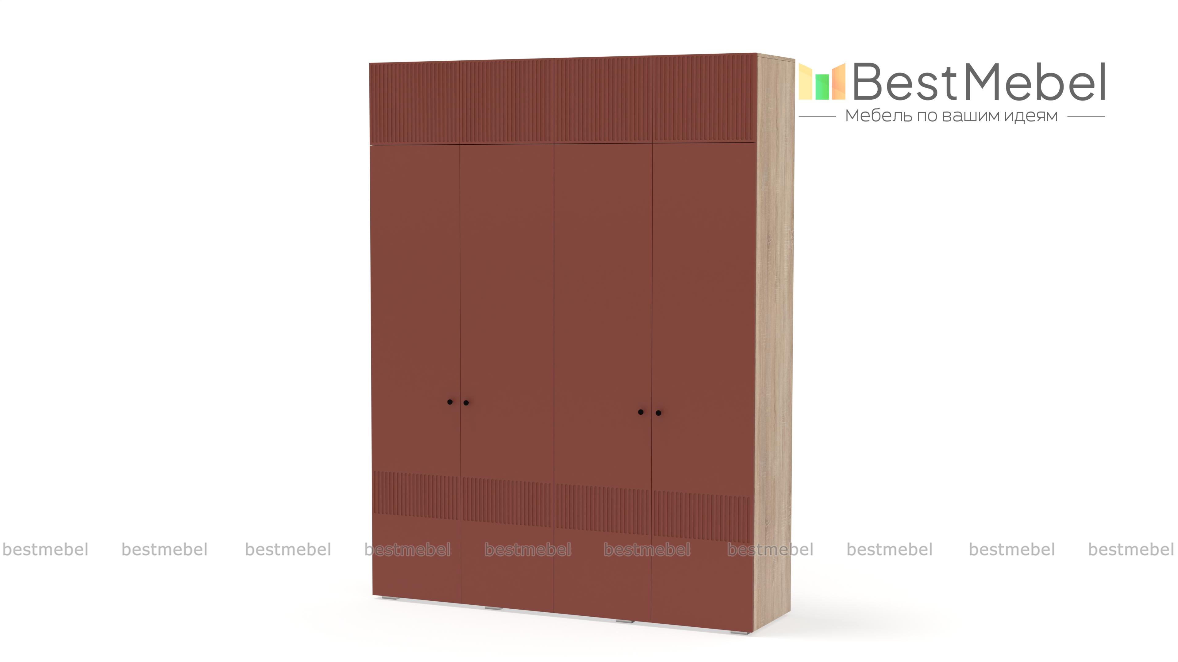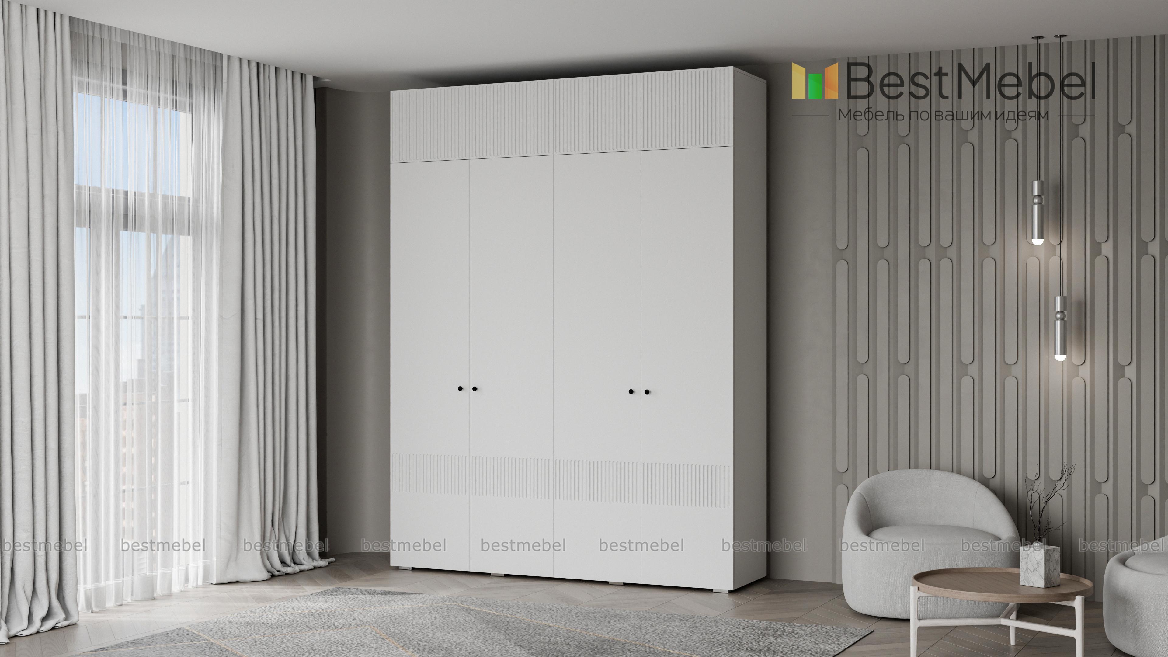 Шкаф распашной Джосс 10 BMS с четырьмя дверцами и антресолью можно разместить в разных комнатах: небольших спальнях, прихожих и детских. Оригинальные оттенки корпуса и фасада создают комфортную атмосферу в помещении, стильный акцент в отделке — фрезерованный орнамент. За дверцами справа скрыты штанга и полка, а слева — узкая платяная секция и бельевой стеллаж. Купить шкаф распашной Джосс 10 BMS с выбором размеров, цвета и фурнитуры вы сможете недорого в нашем интернет-магазине.