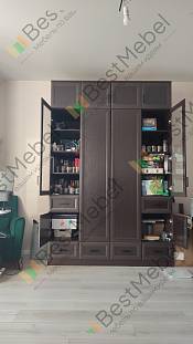 Отличный шкаф. Сделан качественно. Благодаря подобранным размерам получился очень вместительным. Изготовление и доставка заняли всего неделю. Был брак детали одного из ящиков. Лицевая стенка, к которой крепится фасад, имела кромку с нижней, не лицевой стороны (со стороны дня), а верхняя, которую видно при открытии ящика была без кромки. После обращения в поддержку, в течение двух дней привезли новую деталь.