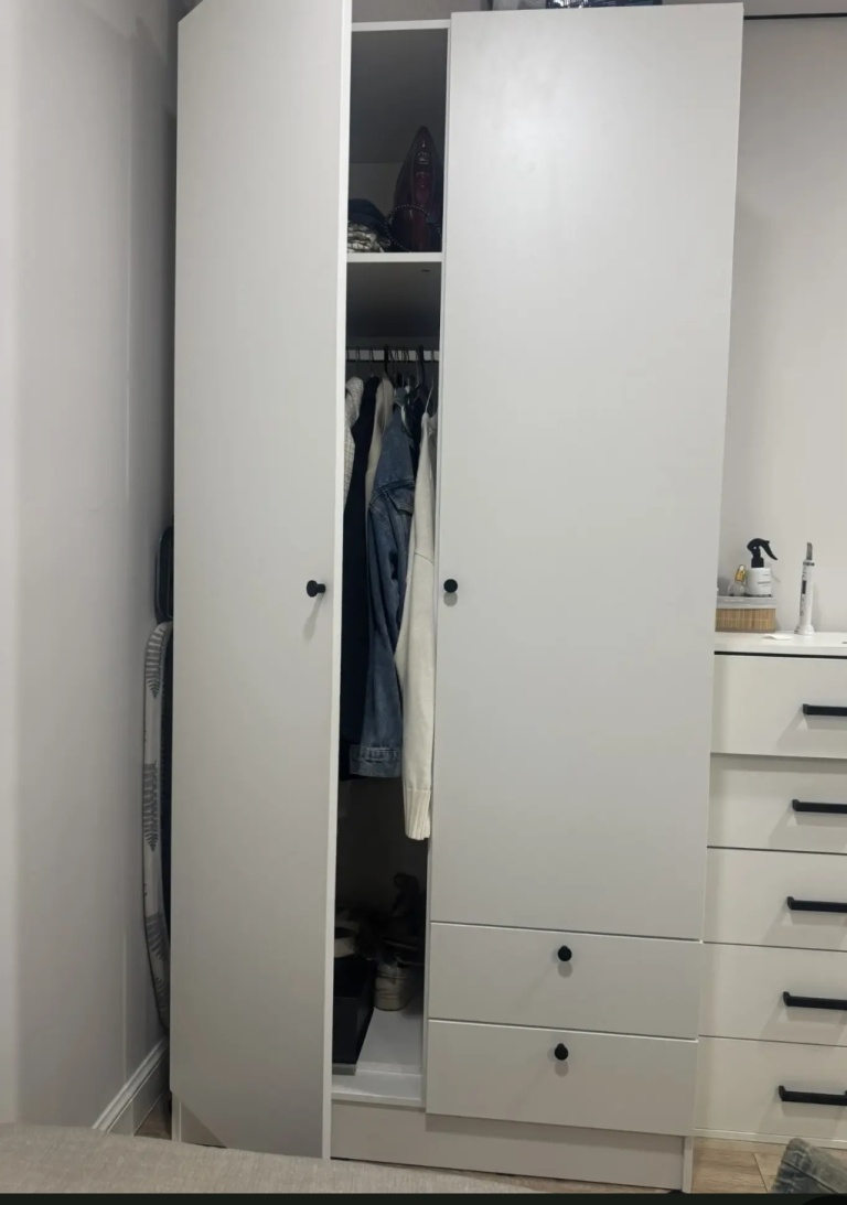 Заказ 00000108675, изделие ЭСКИЗ №00000108675 Шкаф распашной Вильхаттен Vilhatten 1 (1000х2080х500)Заказала данный шкаф в детскую комнату для дочери 6 лет. Пришло все быстро, отлично упаковано, собирается легко, качество материалов на высоте! Безумно порадовал заказ по необходимым нам размерам! Идеального вписался в нишу. Мы немного изменили внутреннее наполнение для удобства ребёнка, по мере роста будем менять высоту штанги. Поместились все вещи ребёнка и осталось много свободного места на будущее!