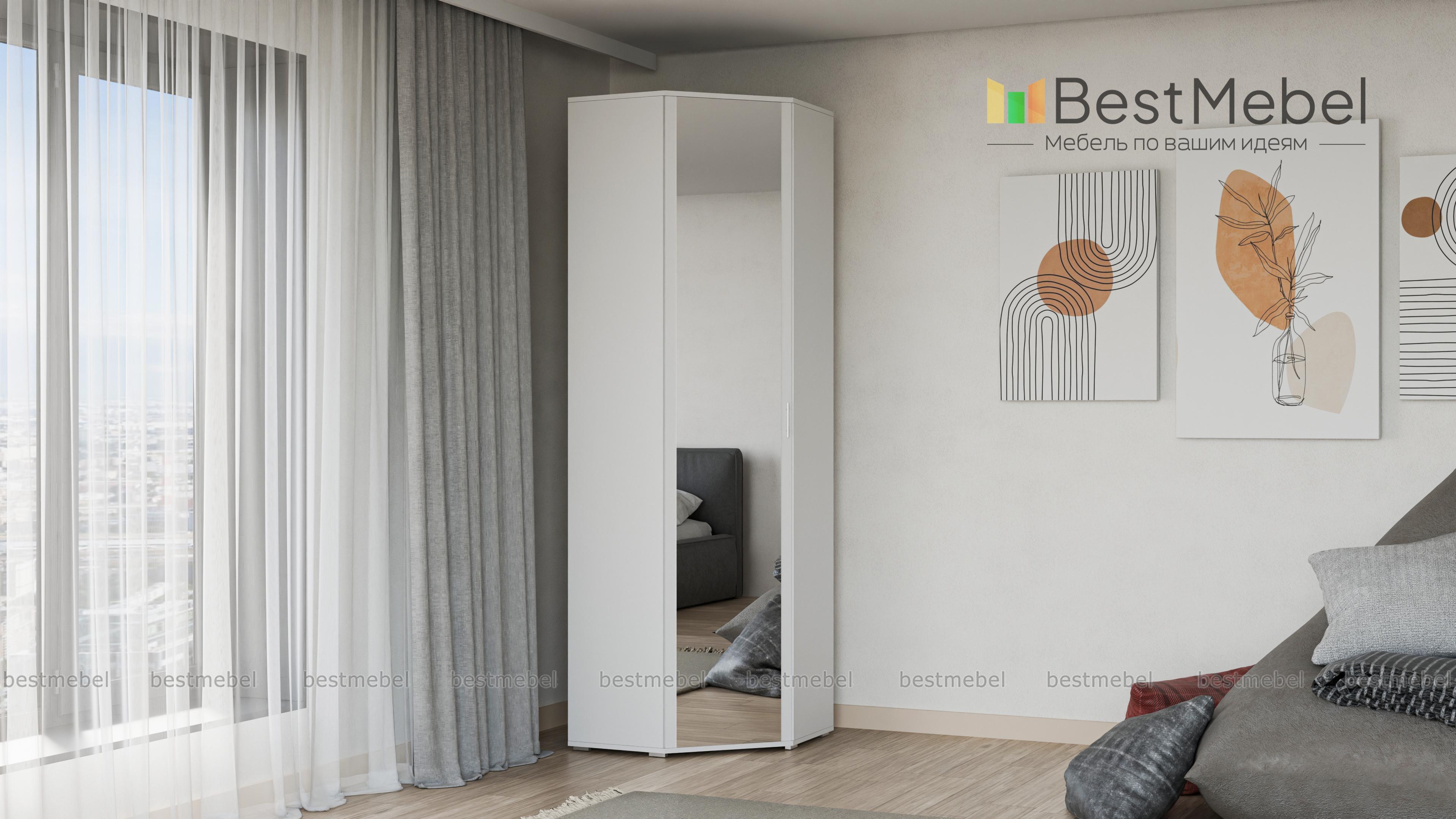 Шкаф угловой Ирис 27 BMS станет достойным украшением комнаты. Аккуратный шкаф необычной формы органично смотрится и как самостоятельный предмет мебели и как часть мебельного набора. Однотонная модель дополнена большим зеркалом, что понравится прекрасным модницам. Вместительный шкаф будет желанным атрибутом и в прихожей и в спальне. Благодаря наличию полок и штанги в нем уместится очень много вещей разного рода. Купить шкаф угловой Ирис 27 BMS по низкой цене можно на нашем официальном сайте прямо сейчас.