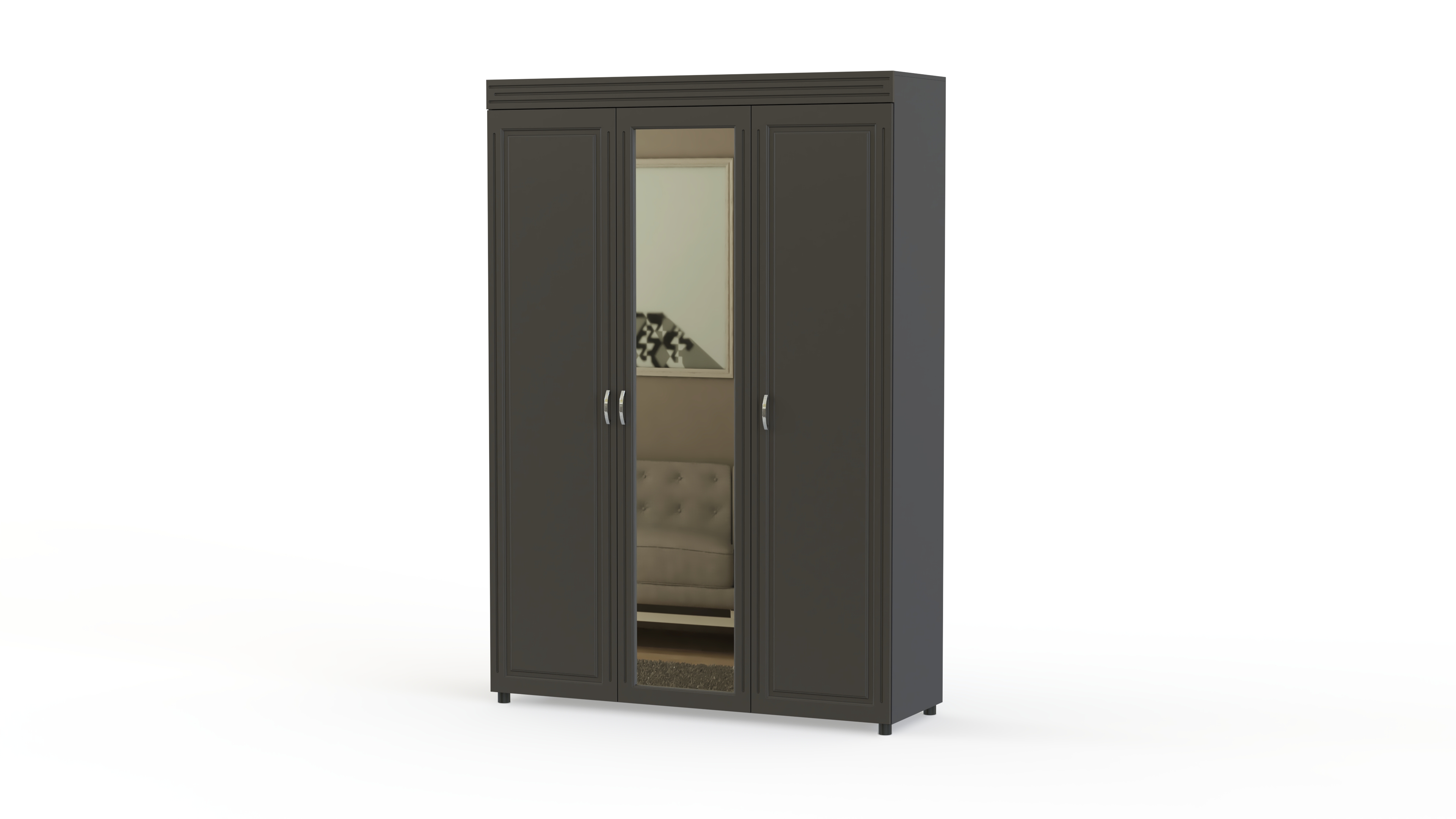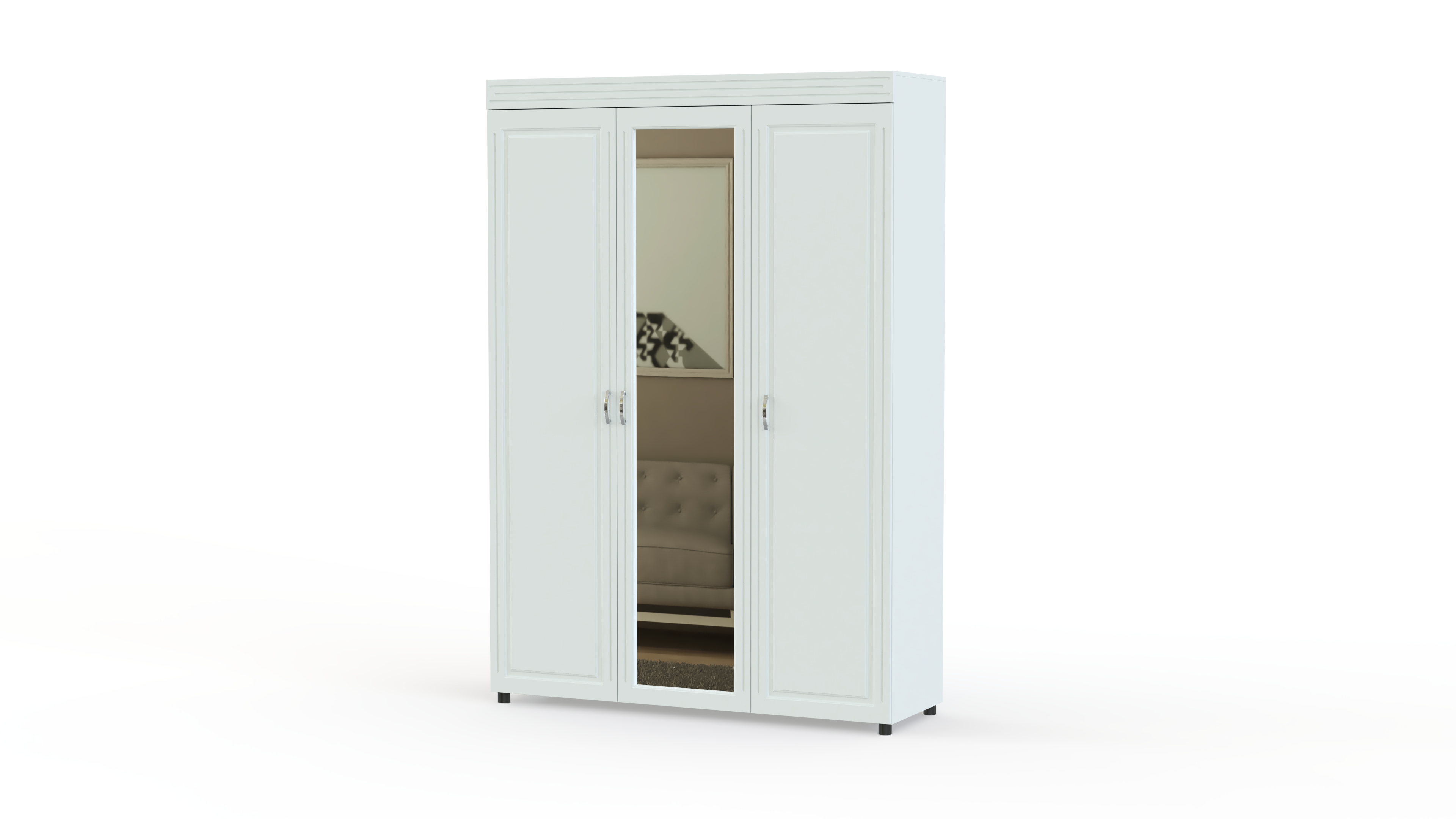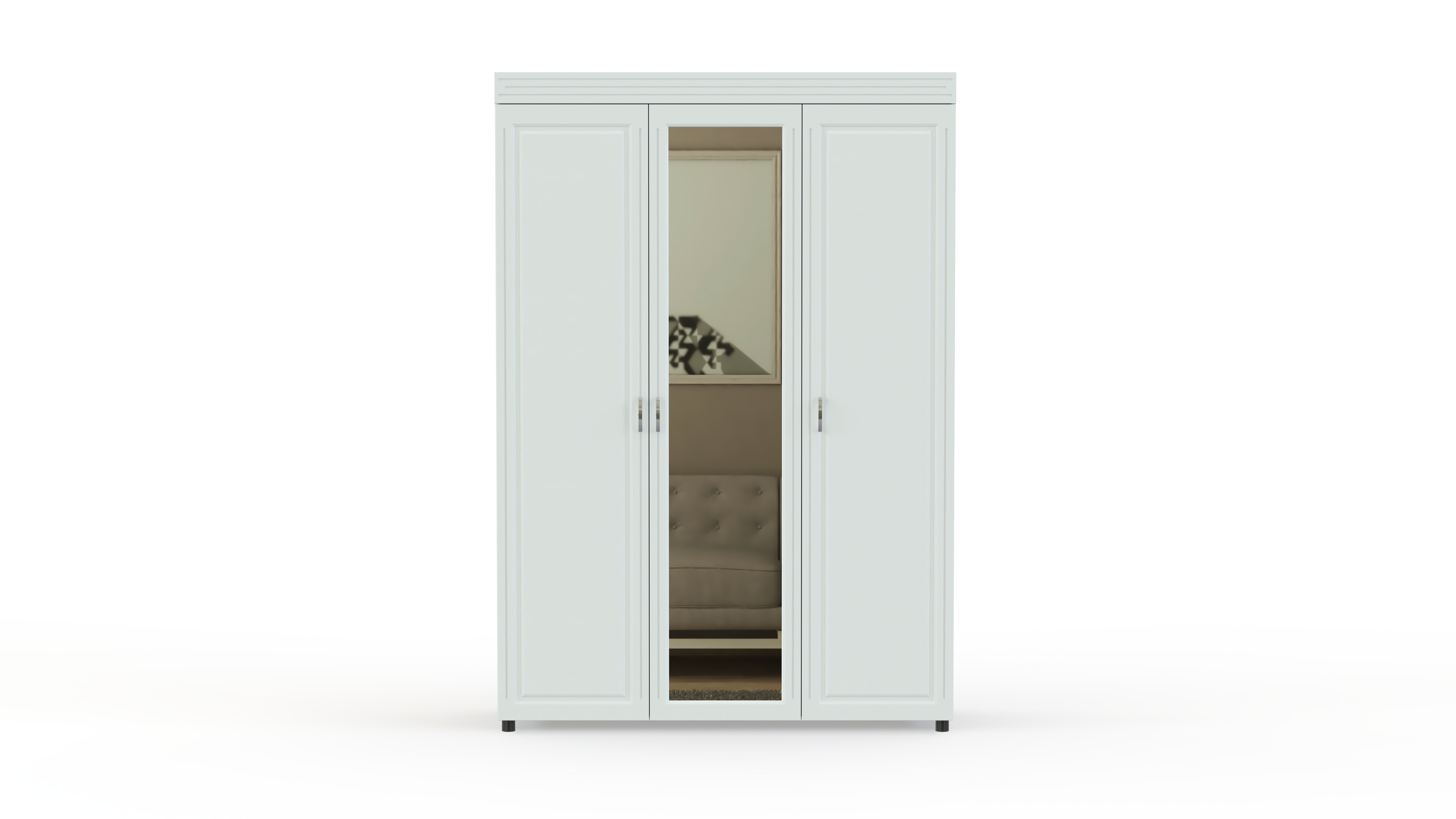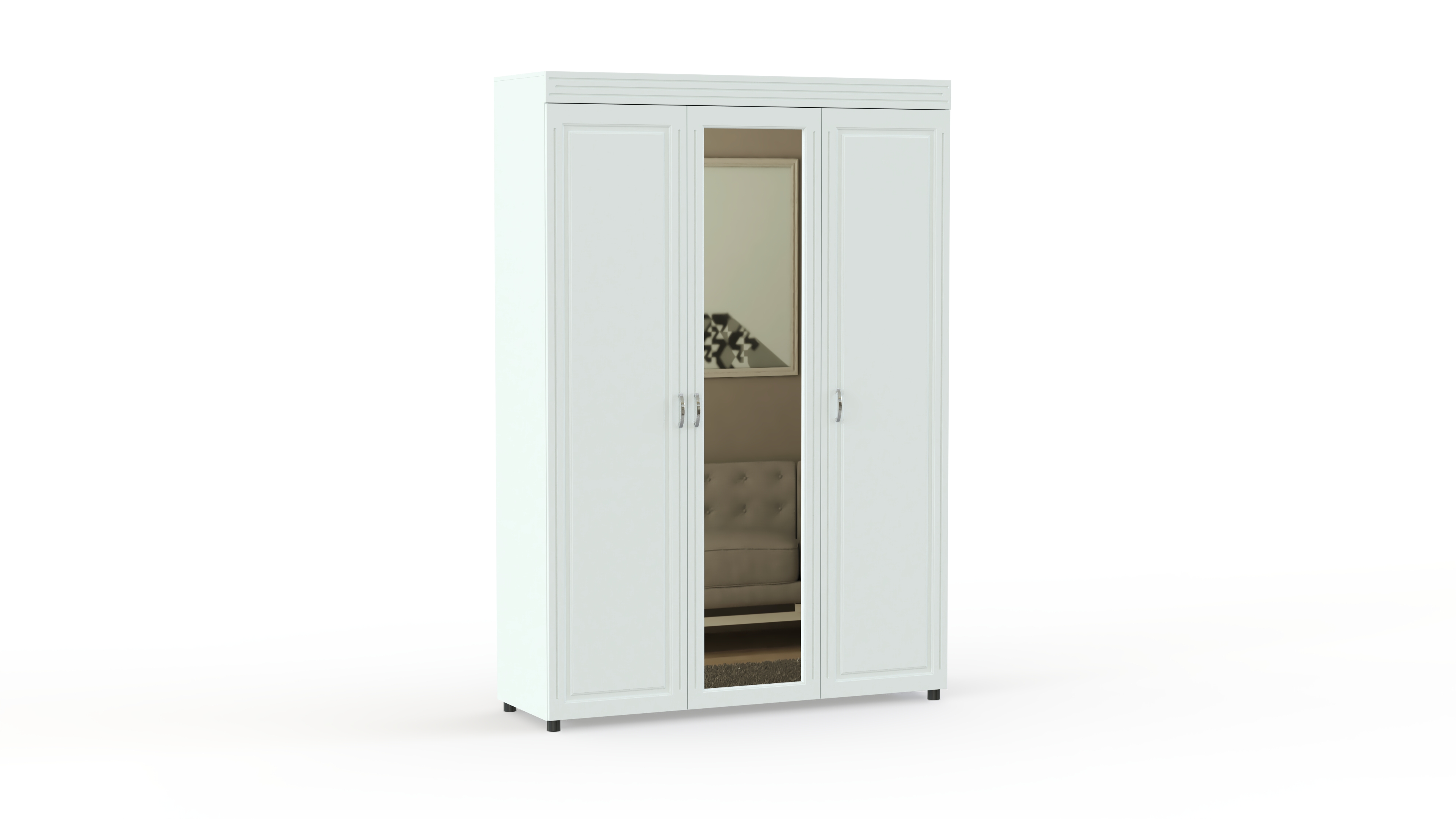 Спальный гарнитур Элизабет Композиция 1 BMS поможет стильно оформить вашу комнату и обеспечить удобное хранение одежде, обуви и аксессуарам. Модель выполнена в классическом стиле из материалов высокого качества, а потому не выйдет из моды и прослужит вам долгие годы. В комплекте трехстворчатый шкаф, комод с навесным зеркалом, двуспальная кровать и две тумбы. Фасады всех элементов декорированы по контуру и имеют оригинальную металлическую фурнитуру.