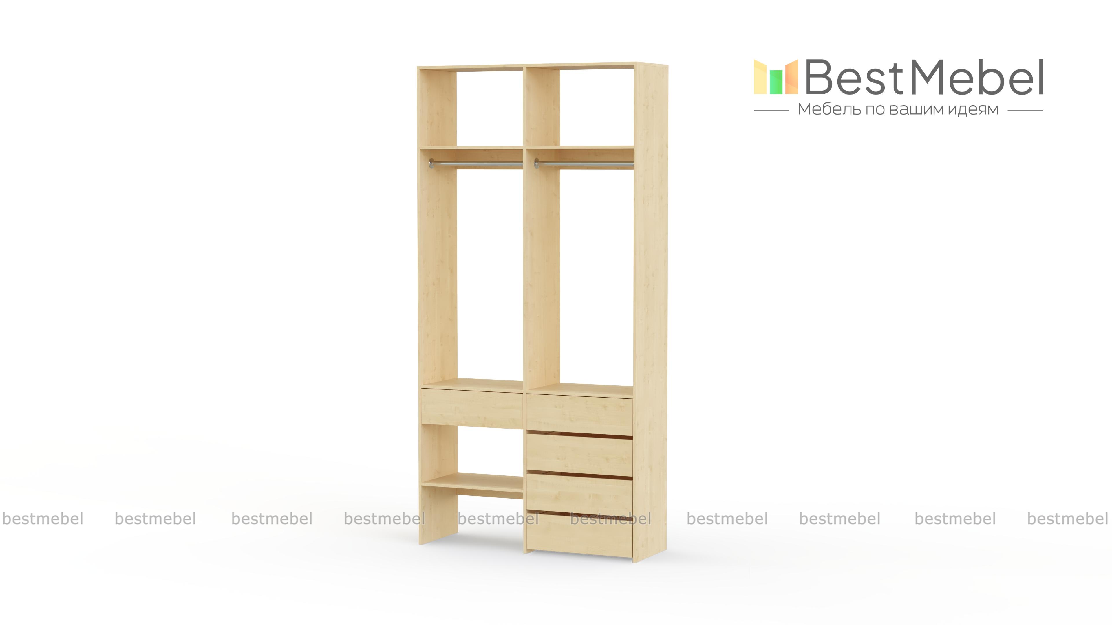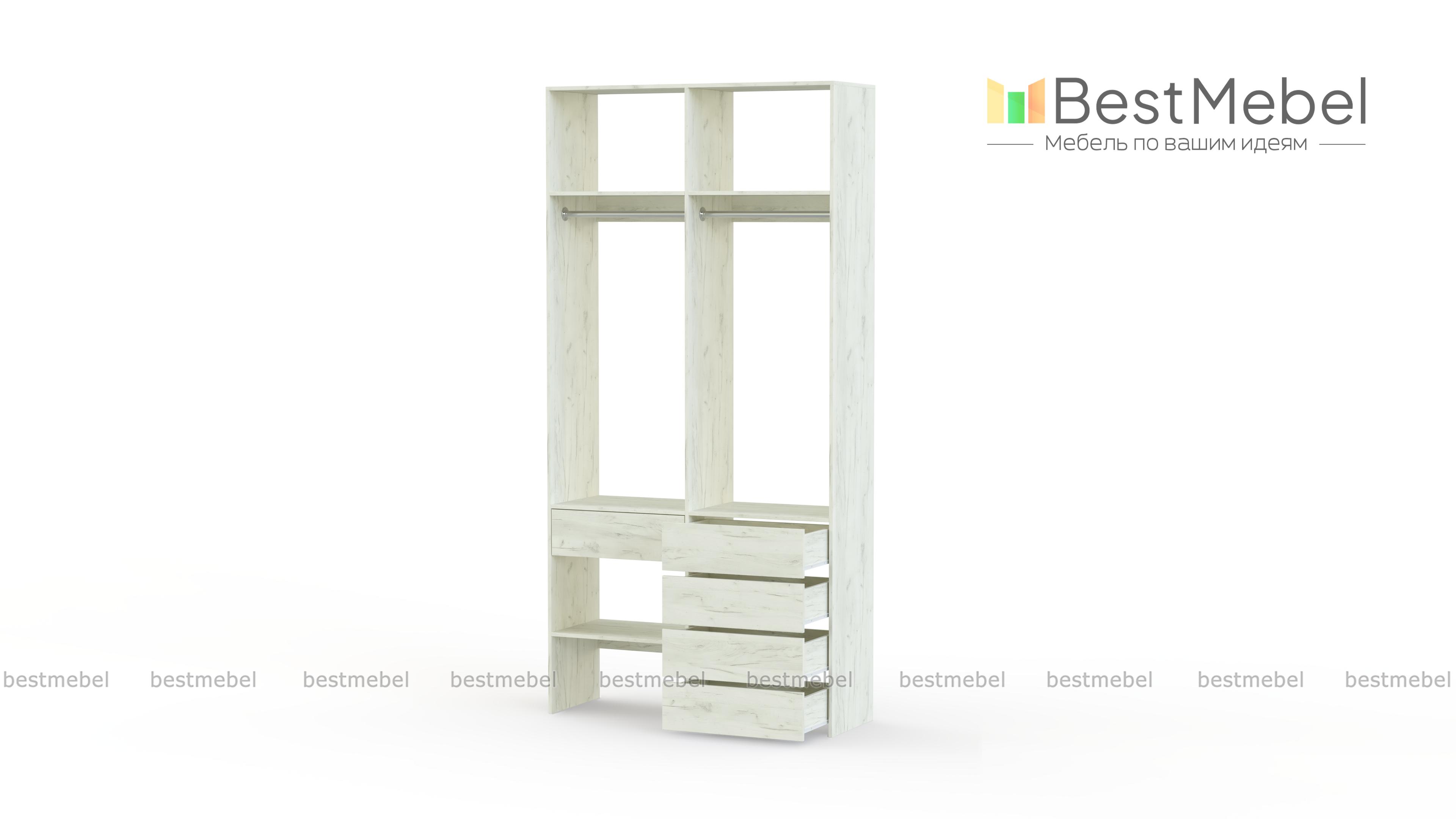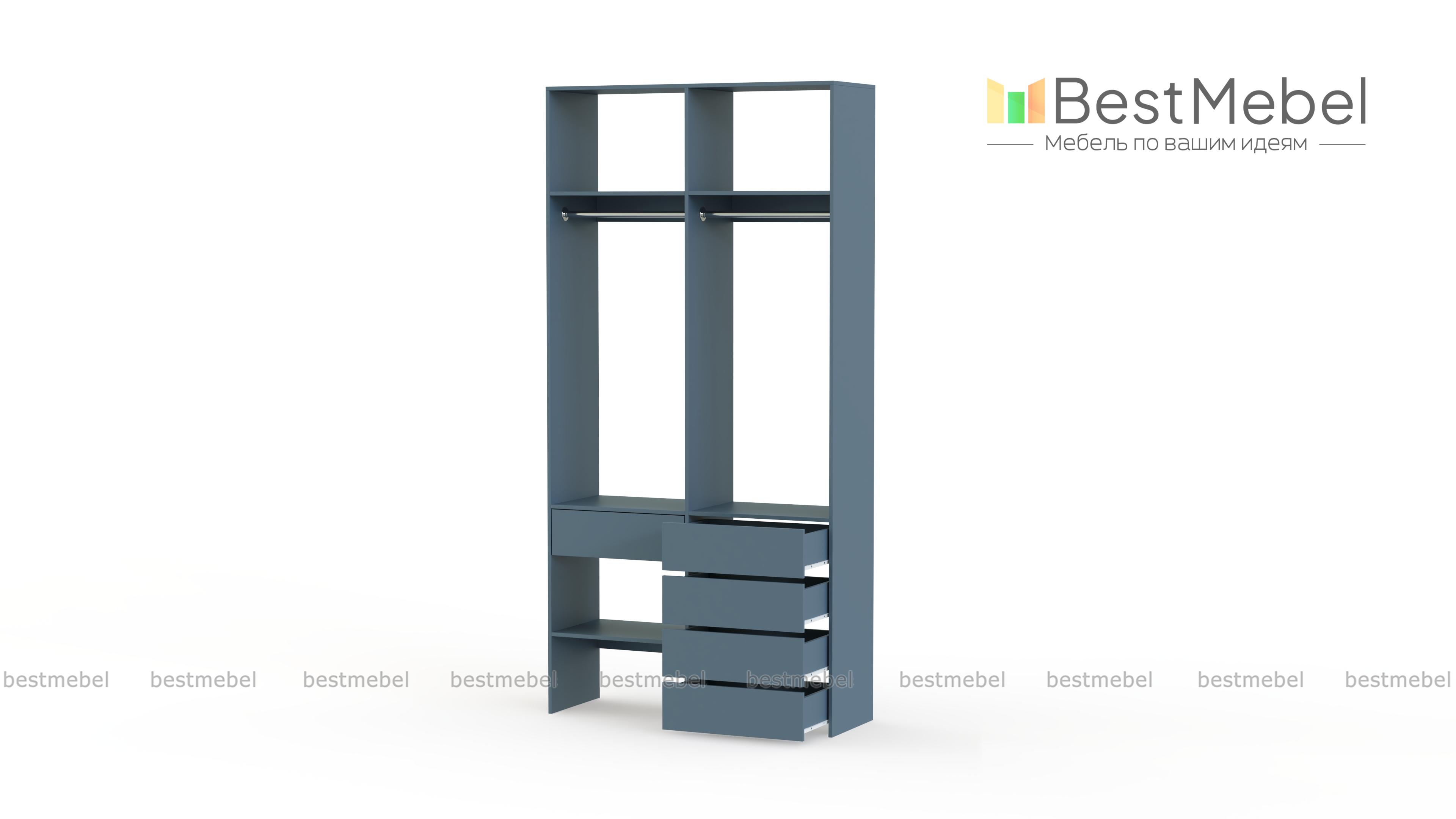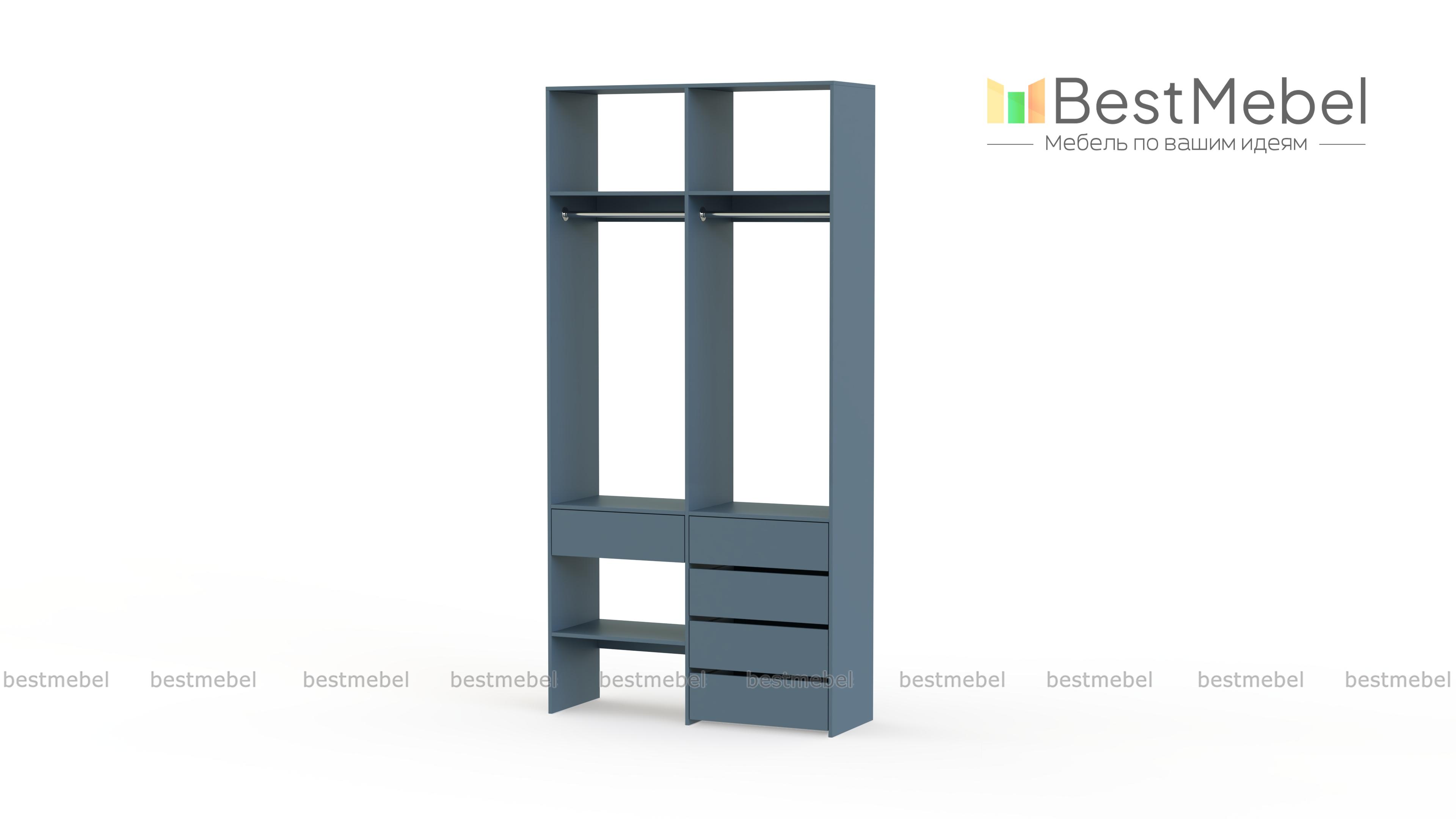 Стеллаж для одежды Мирта 46 BMS — стильный и функциональный, имеет удобную конфигурацию. Две штанги, полки на разной высоте и пять выдвижных ящиков максимально эффективно используют небольшое пространство. Двухсекционный стеллаж из прочной ламинированной ДСП прекрасно подходит для малогабаритных помещений, легко сохраняя порядок. Купить стеллаж для одежды Мирта 46 BMS в необходимом размере и любом оттенке из нашего каталога вы сможете на сайте интернет-магазина.