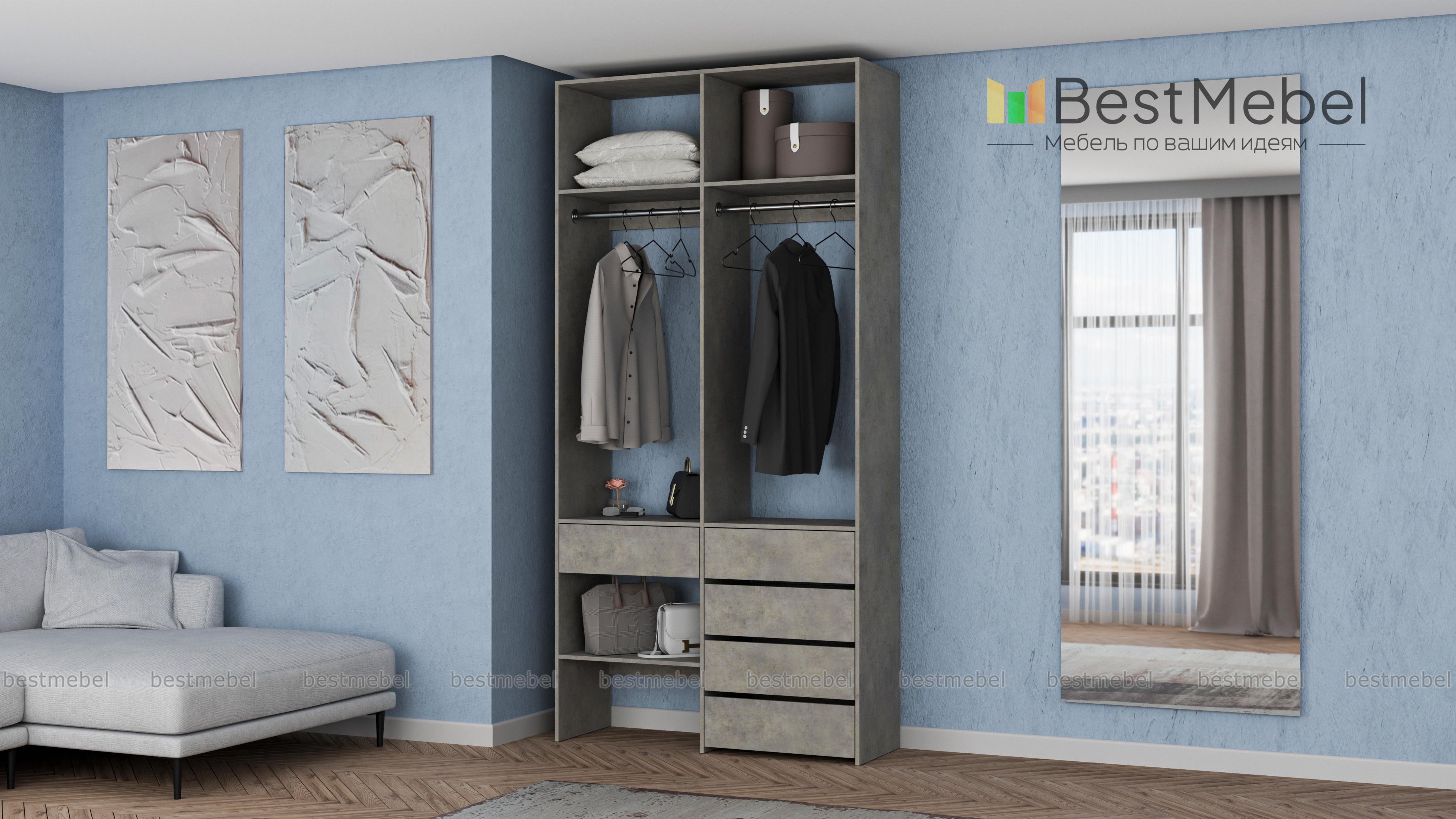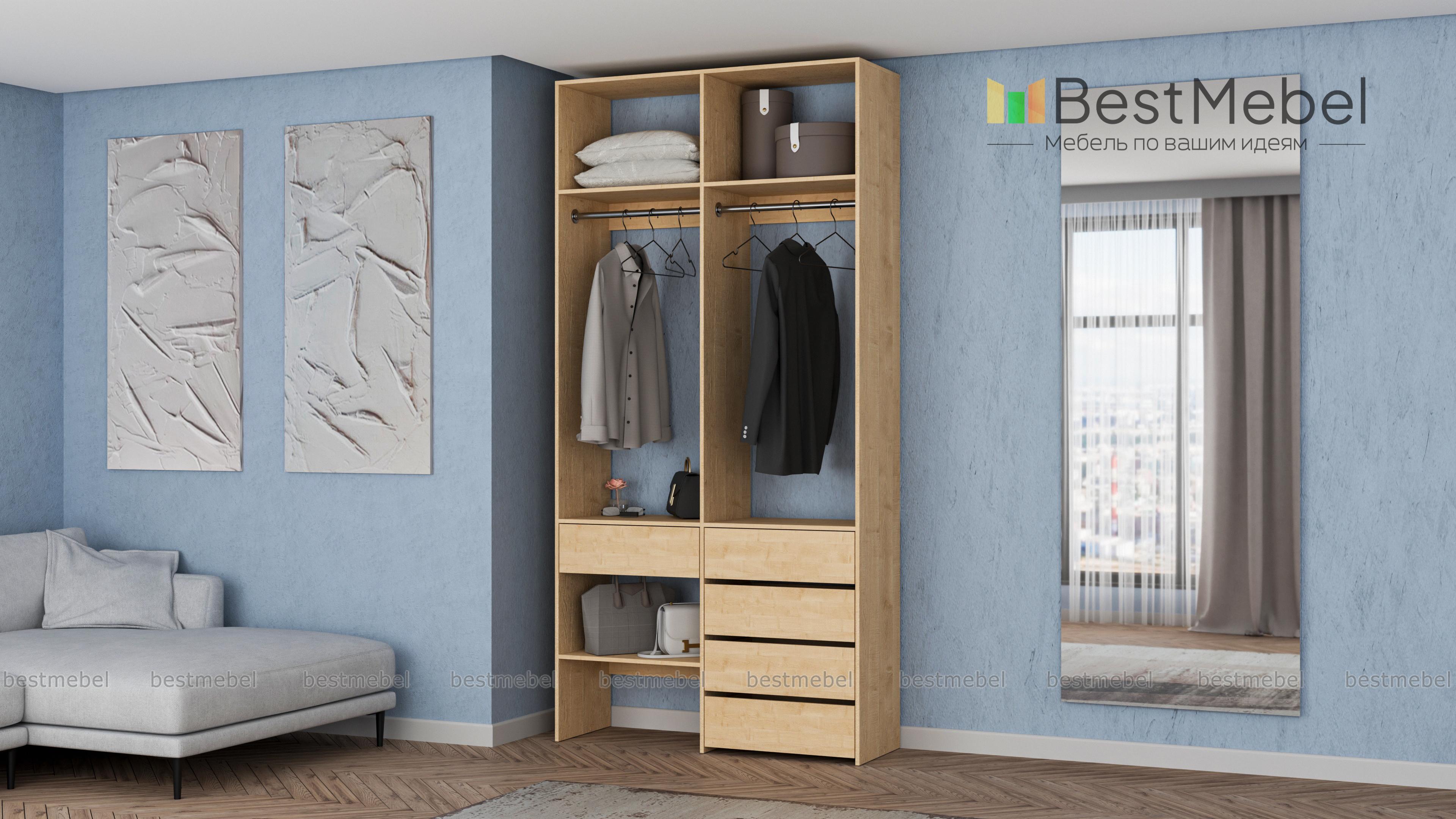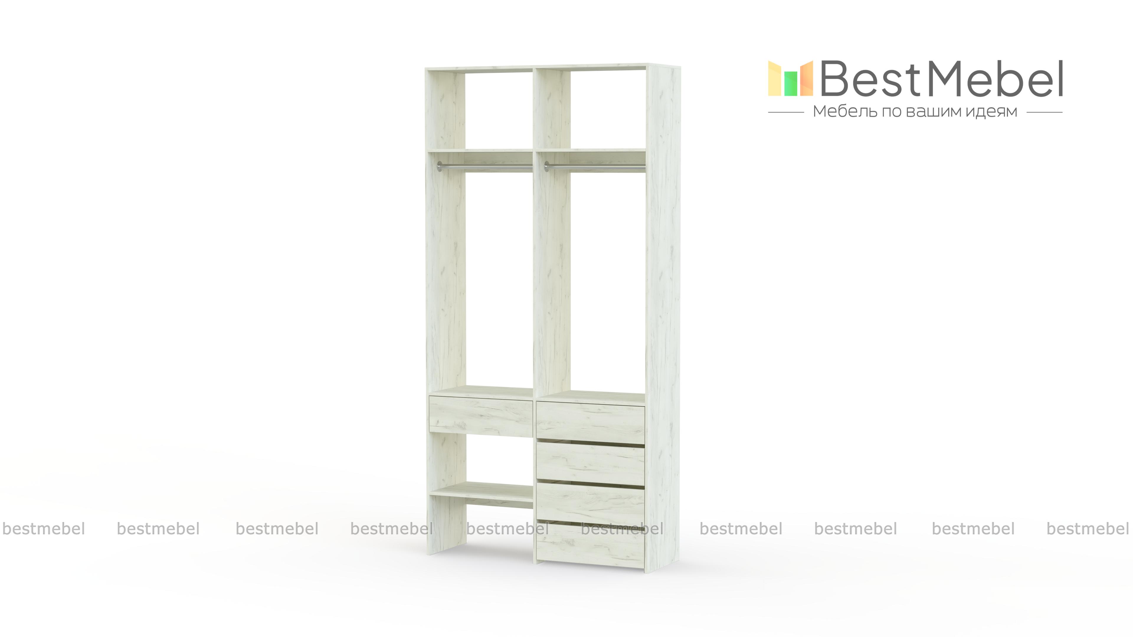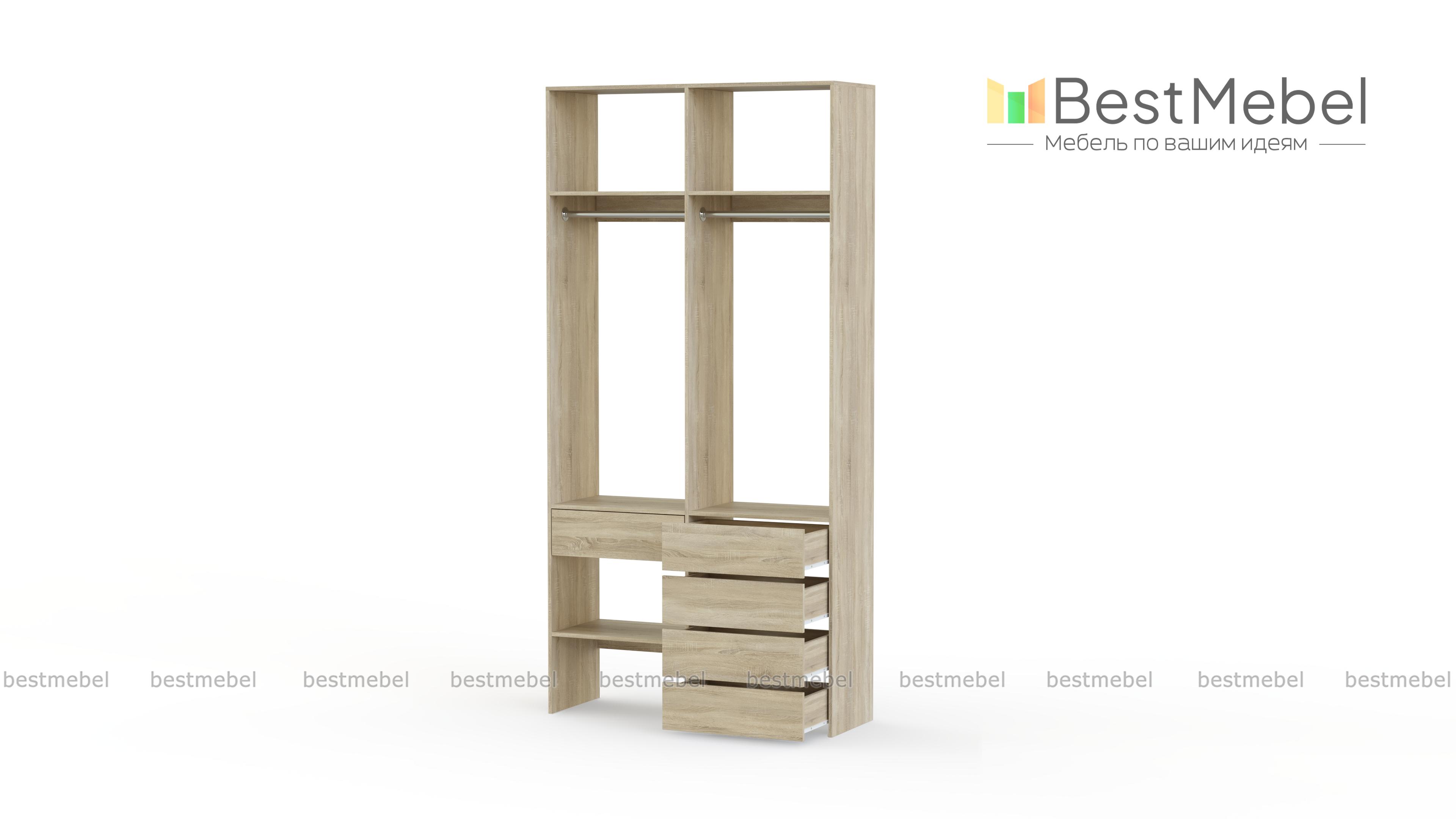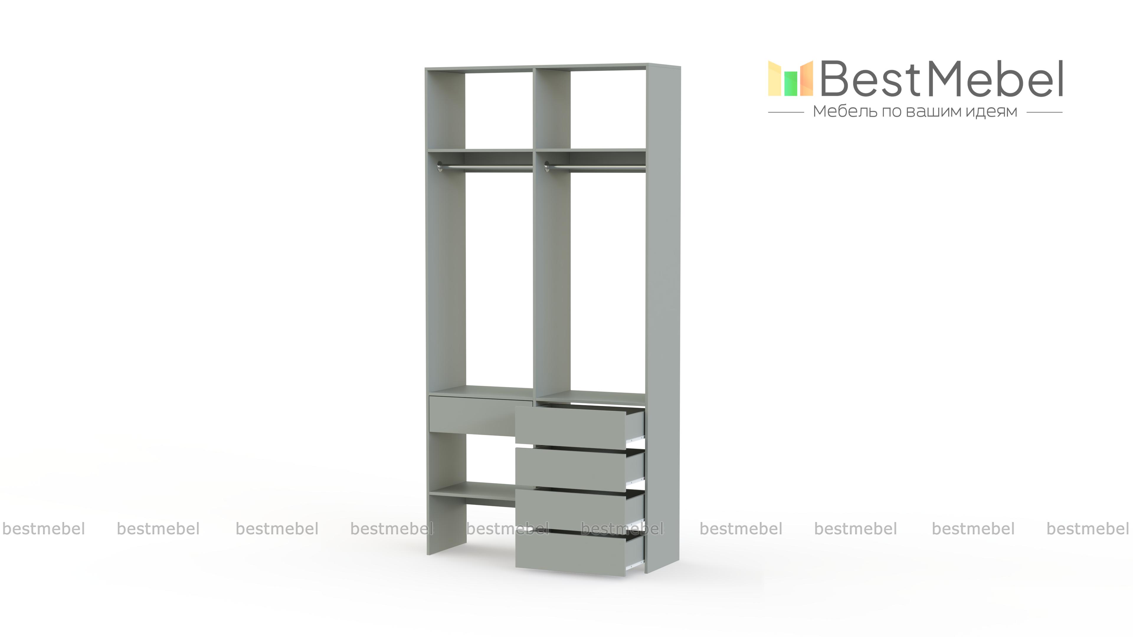 Стеллаж для одежды Мирта 46 BMS — стильный и функциональный, имеет удобную конфигурацию. Две штанги, полки на разной высоте и пять выдвижных ящиков максимально эффективно используют небольшое пространство. Двухсекционный стеллаж из прочной ламинированной ДСП прекрасно подходит для малогабаритных помещений, легко сохраняя порядок. Купить стеллаж для одежды Мирта 46 BMS в необходимом размере и любом оттенке из нашего каталога вы сможете на сайте интернет-магазина.