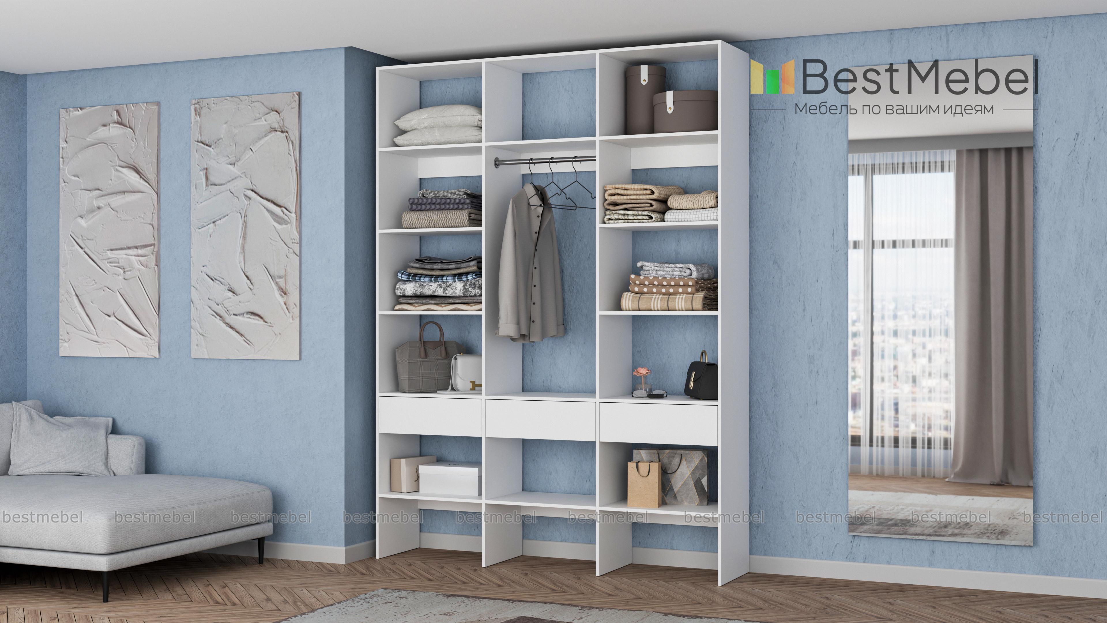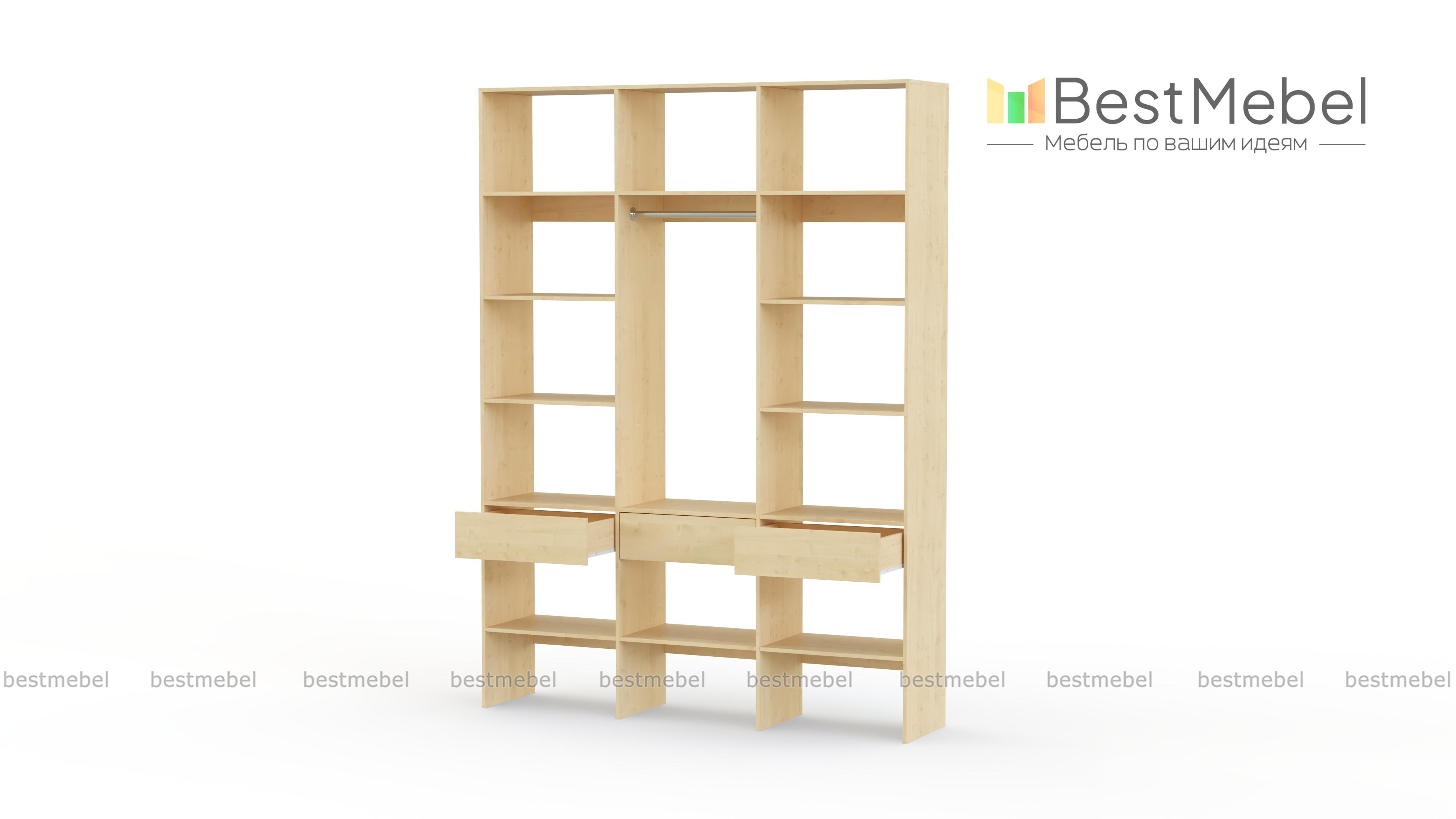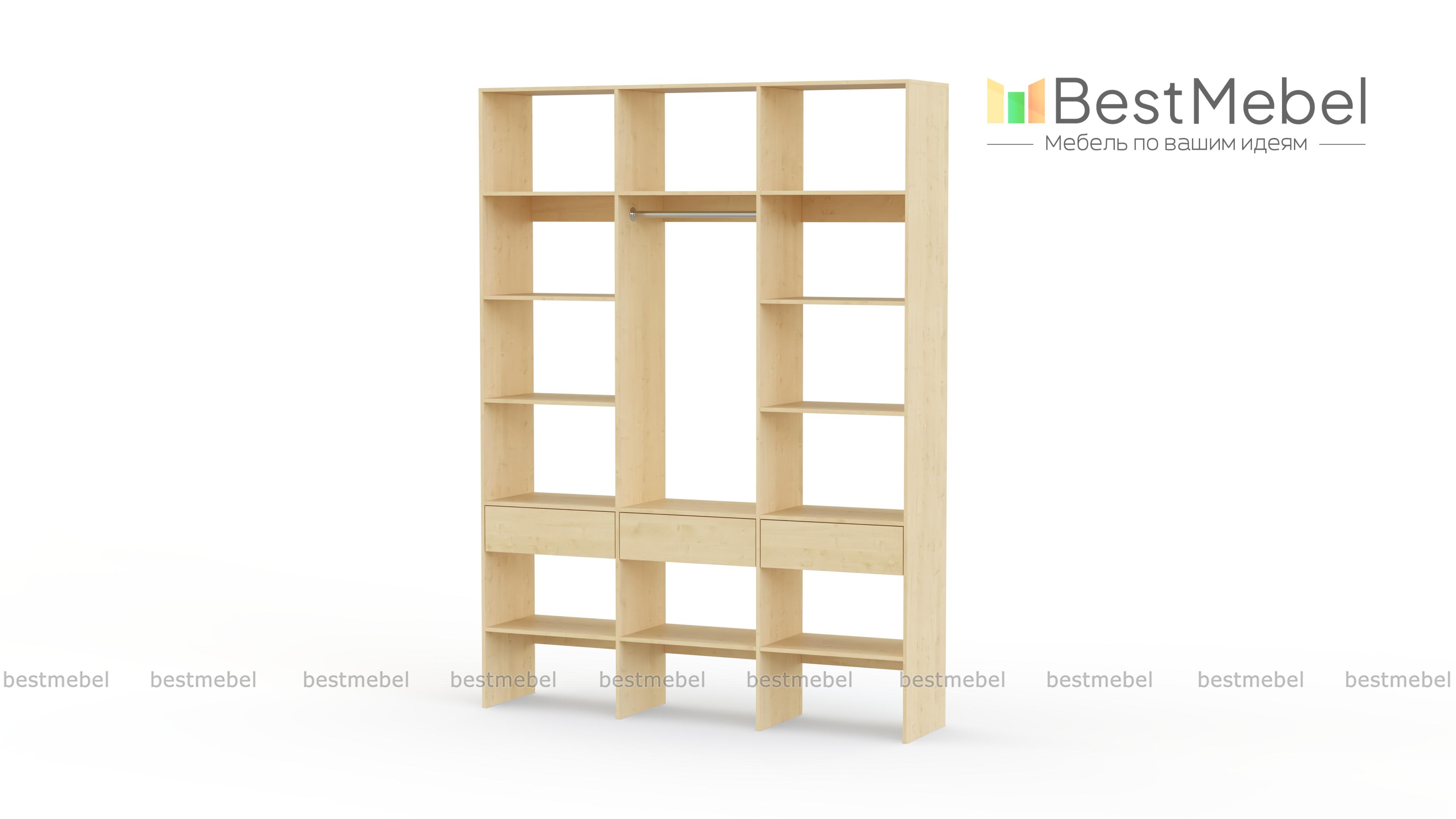 Стеллаж для одежды Мирта 50 BMS поможет вам с комфортом оборудовать прихожую или гардеробную. Выполненная из ламинированной плиты, конструкция надежна и долговечна, а поверхности легко очищаются от пыли и загрязнений. На удобной высоте располагаются платяная штанга, полки для одежды, обуви и органайзеров и три выдвижных ящика под мелкий трикотаж и аксессуары. Купить стеллаж для одежды Мирта 50 BMS в необходимом размере и цвете приглашаем на сайт нашего интернет-магазина.