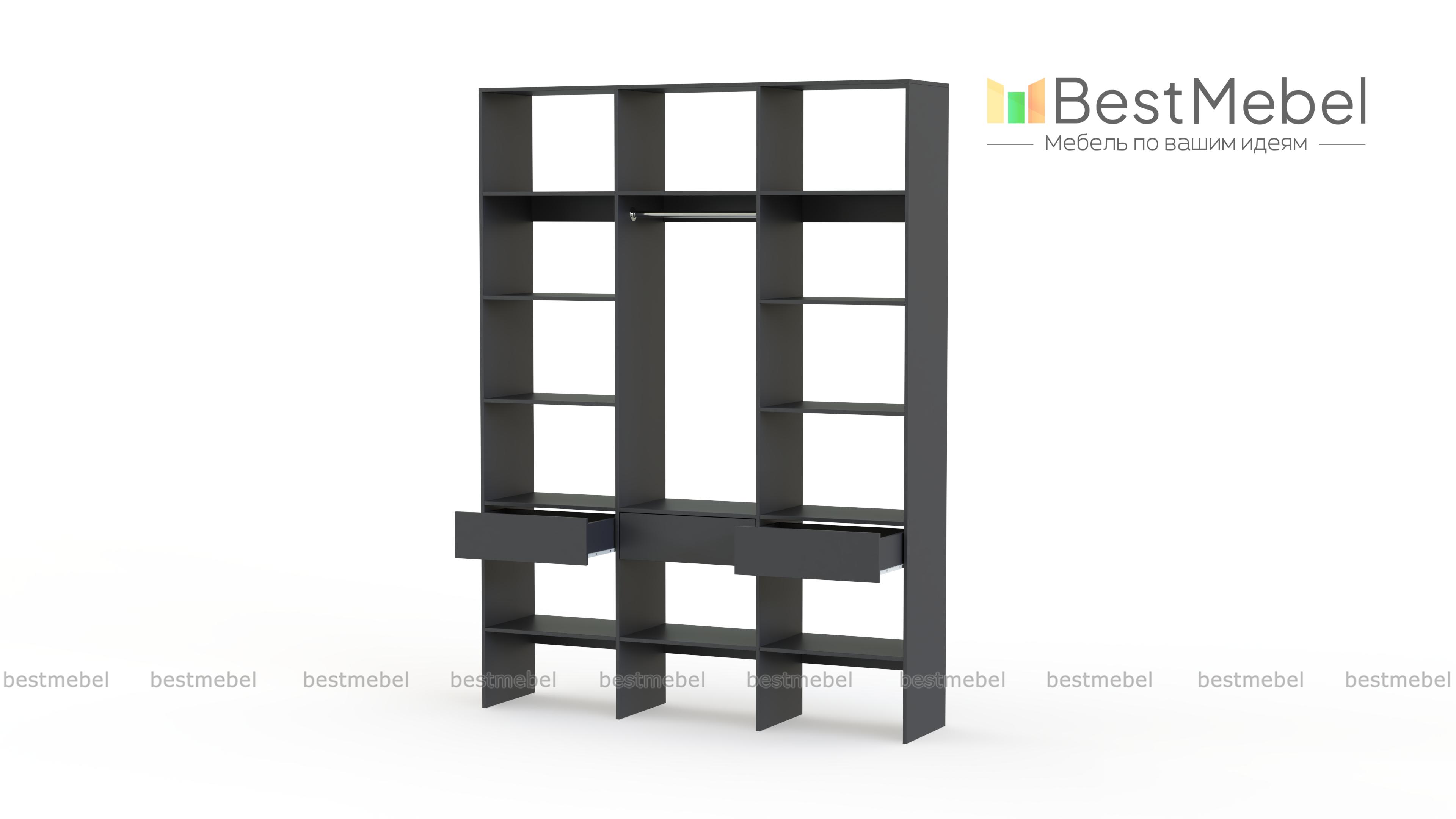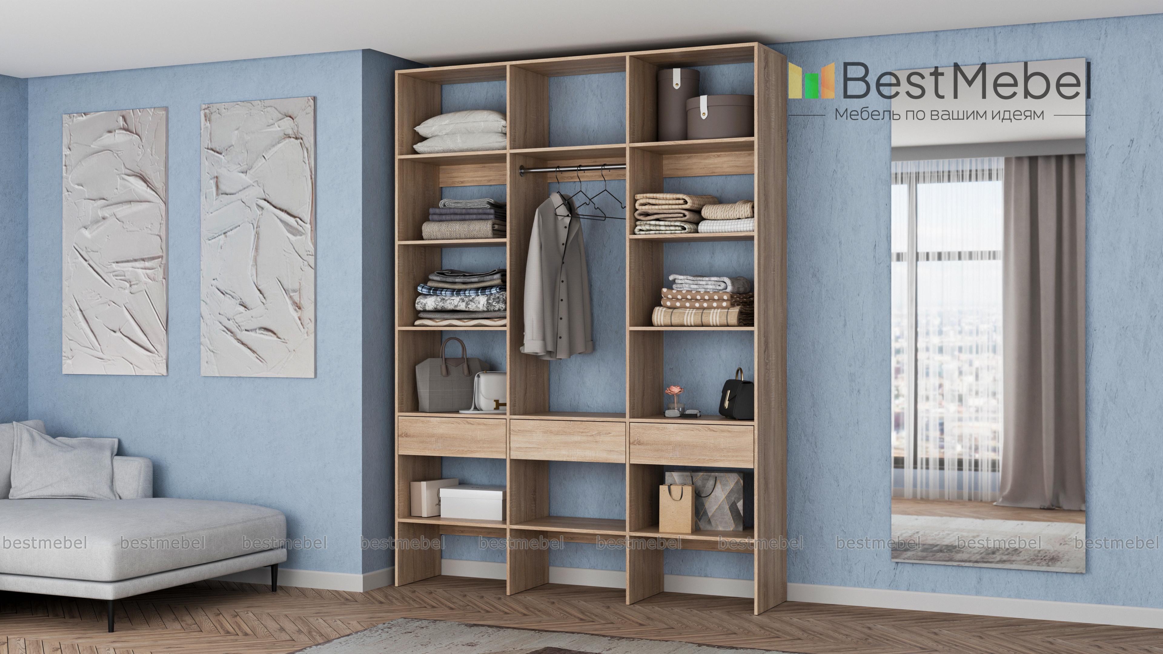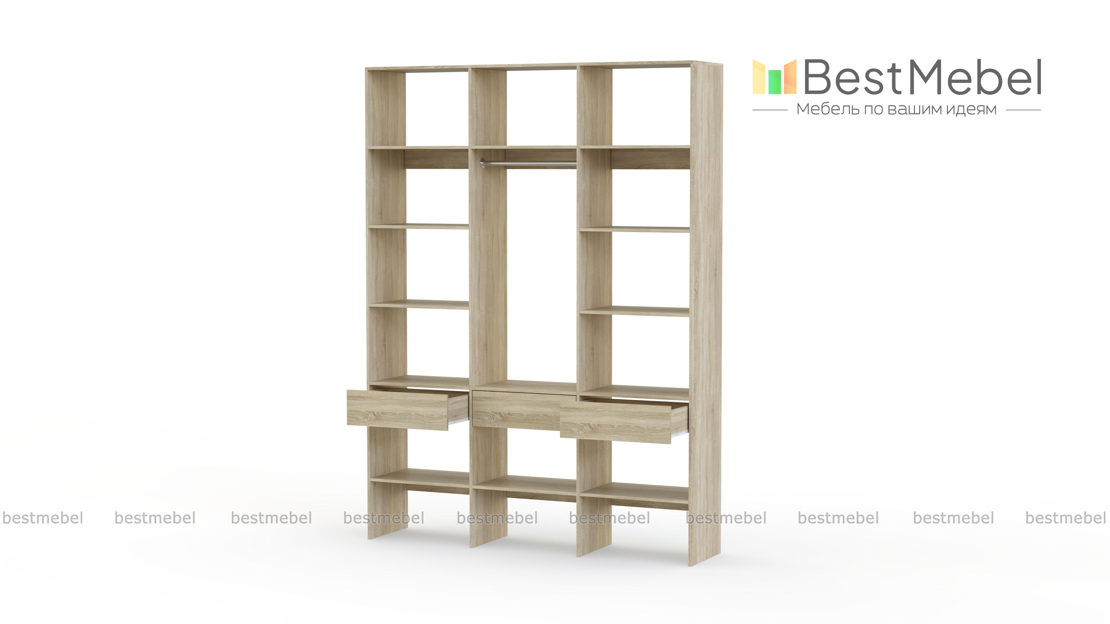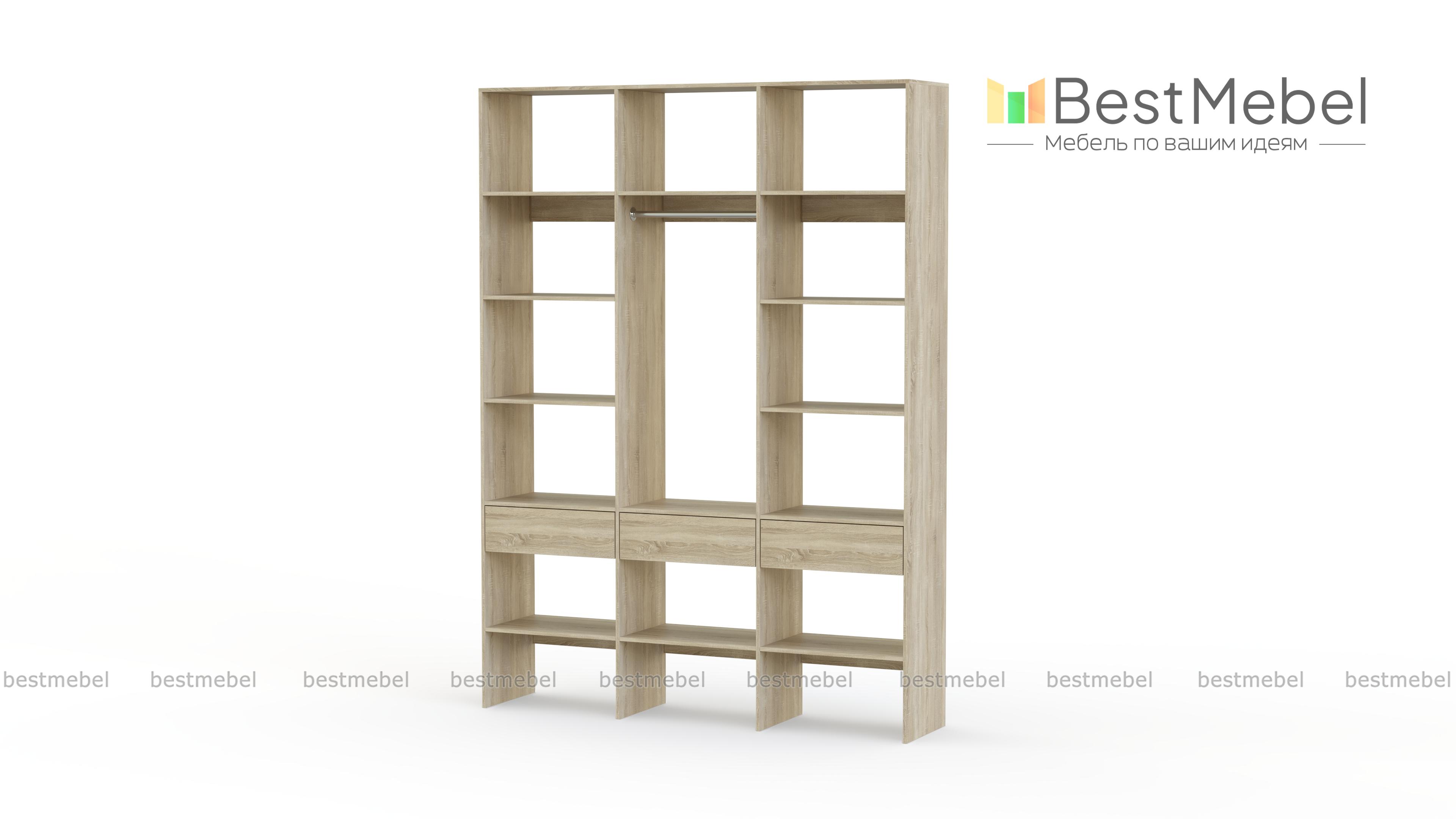 Стеллаж для одежды Мирта 50 BMS поможет вам с комфортом оборудовать прихожую или гардеробную. Выполненная из ламинированной плиты, конструкция надежна и долговечна, а поверхности легко очищаются от пыли и загрязнений. На удобной высоте располагаются платяная штанга, полки для одежды, обуви и органайзеров и три выдвижных ящика под мелкий трикотаж и аксессуары. Купить стеллаж для одежды Мирта 50 BMS в необходимом размере и цвете приглашаем на сайт нашего интернет-магазина.