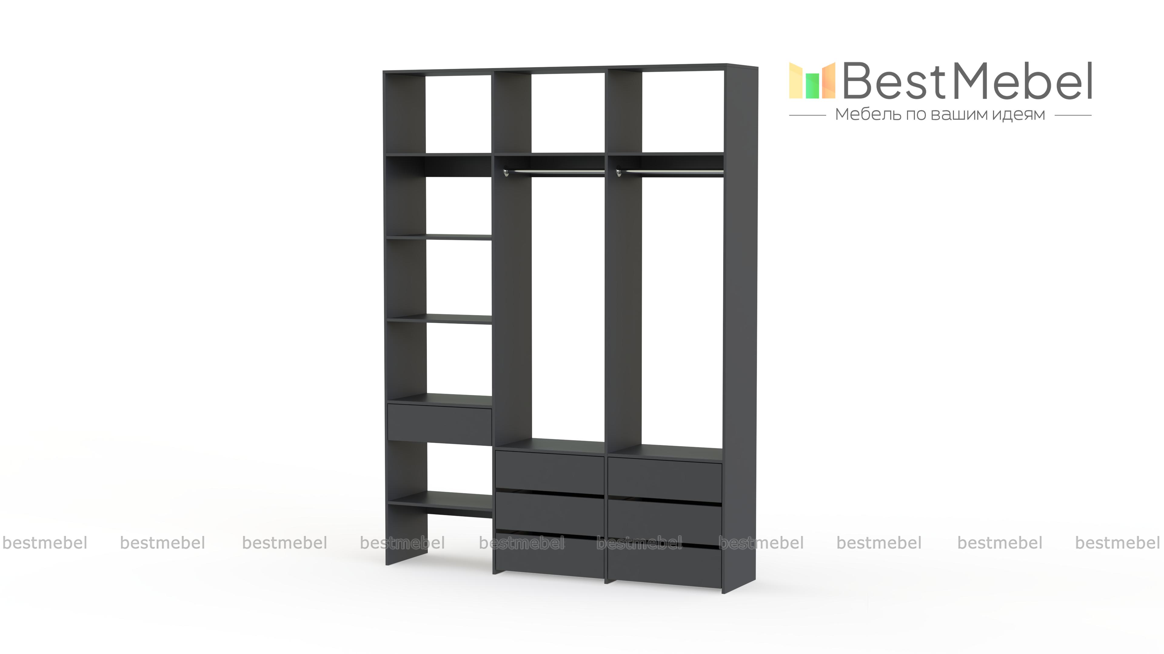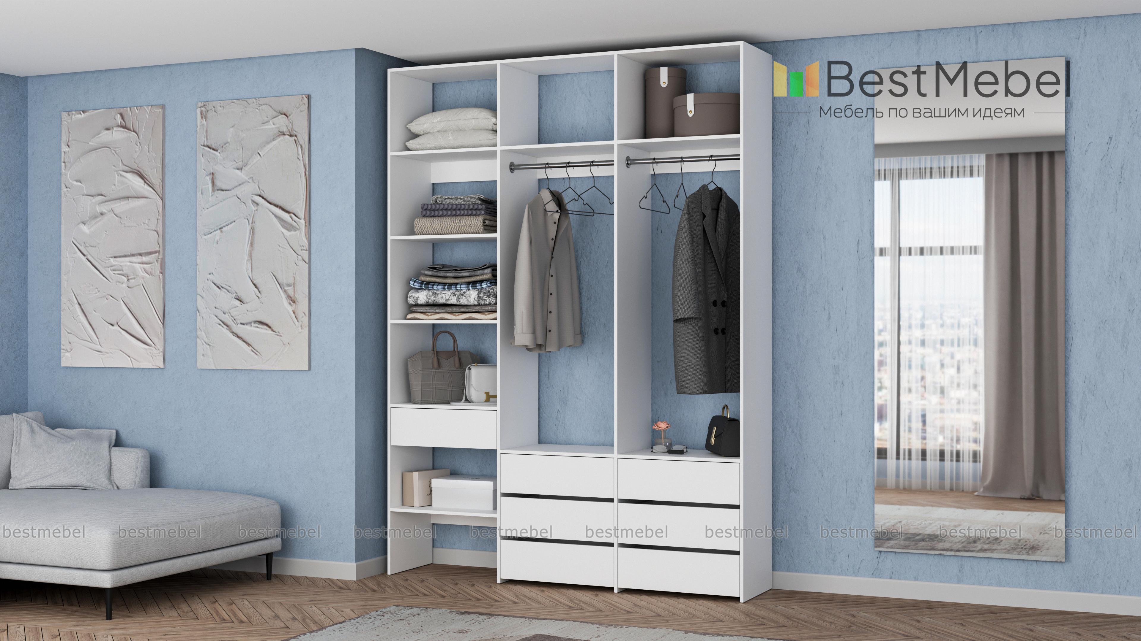 Стеллаж для одежды Мирта 52 BMS оборудован не только двумя штангами, но и расположенными на разных уровнях выдвижными ящиками и полками. Конструкция позволяет вам бережно разместить вещи на вешалках и трикотаж, коробки с обувью и корзины со всевозможными мелочами. Стеллаж выполнен из прочной ЛДСП, что обеспечивает ему долгий срок службы и эстетичный внешний вид. Купить стеллаж для одежды Мирта 52 BMS вы сможете в нашем интернет-магазине, подобрав размеры и цвет по каталогу.