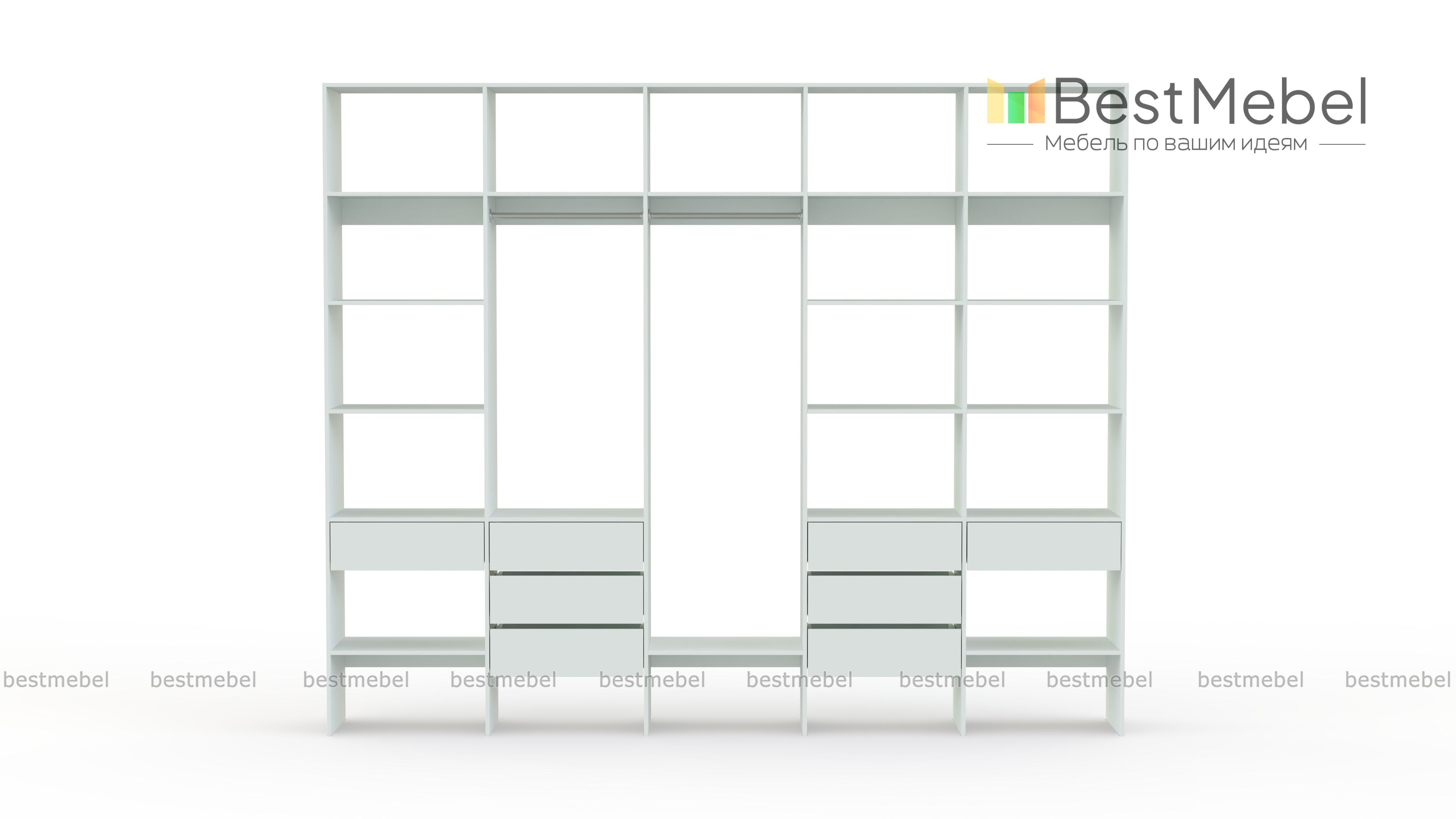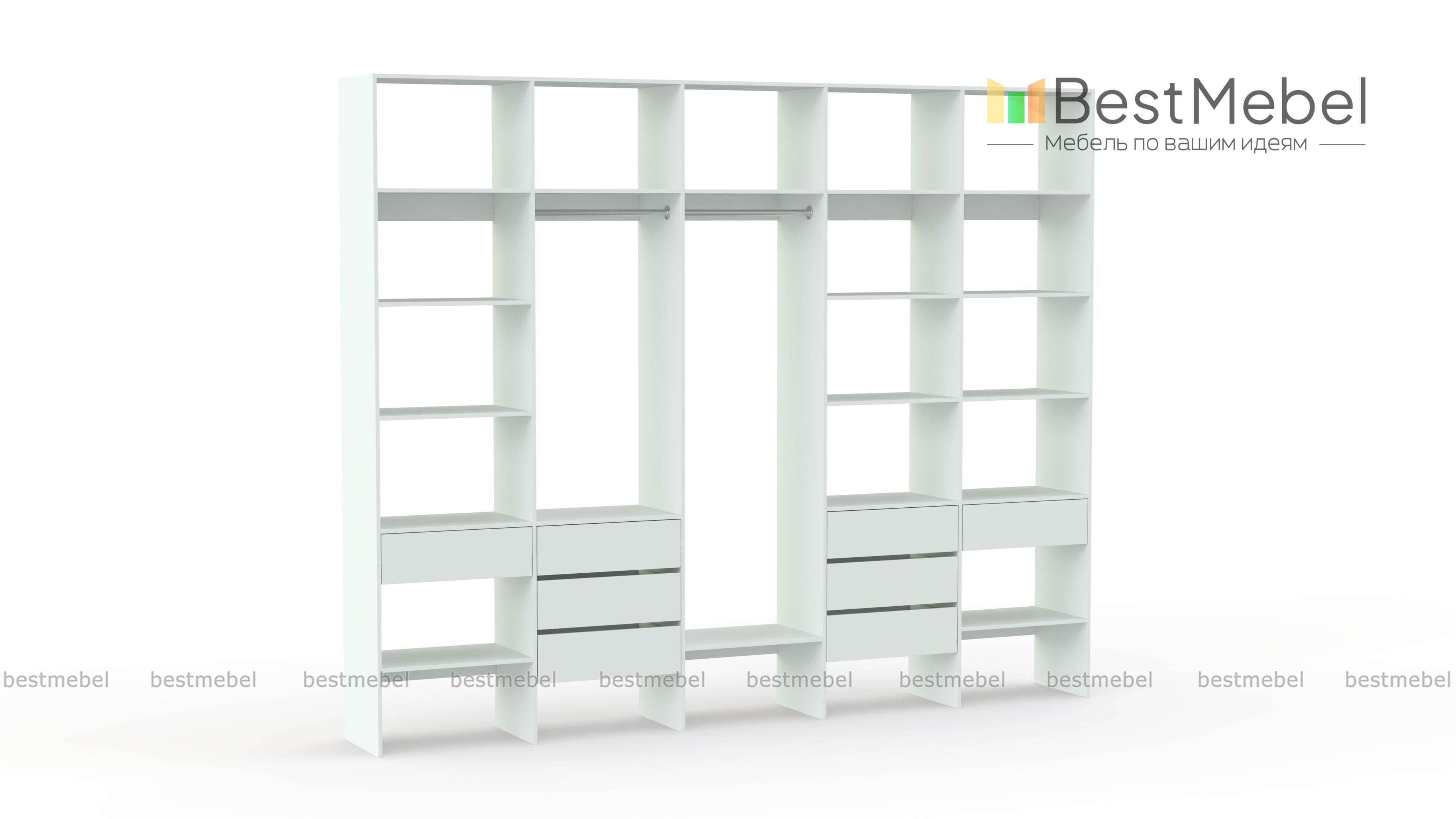 Стеллаж для одежды Мирта 72 BMS поможет вам обустроить зону для хранения вещей. Пять секций стеллажа оборудованы полками, двумя штангами и комбинацией из восьми выдвижных ящиков, позволяя выделить зоны для разных типов одежды, обуви и аксессуаров. Ламинированная ДСП в сочетании с качественной фурнитурой создает долговечную и эстетичную конструкцию. Купить стеллаж для одежды Мирта 72 BMS, подобрав оптимальные размеры и оттенок для вашего интерьера, приглашаем в наш интернет-магазин.