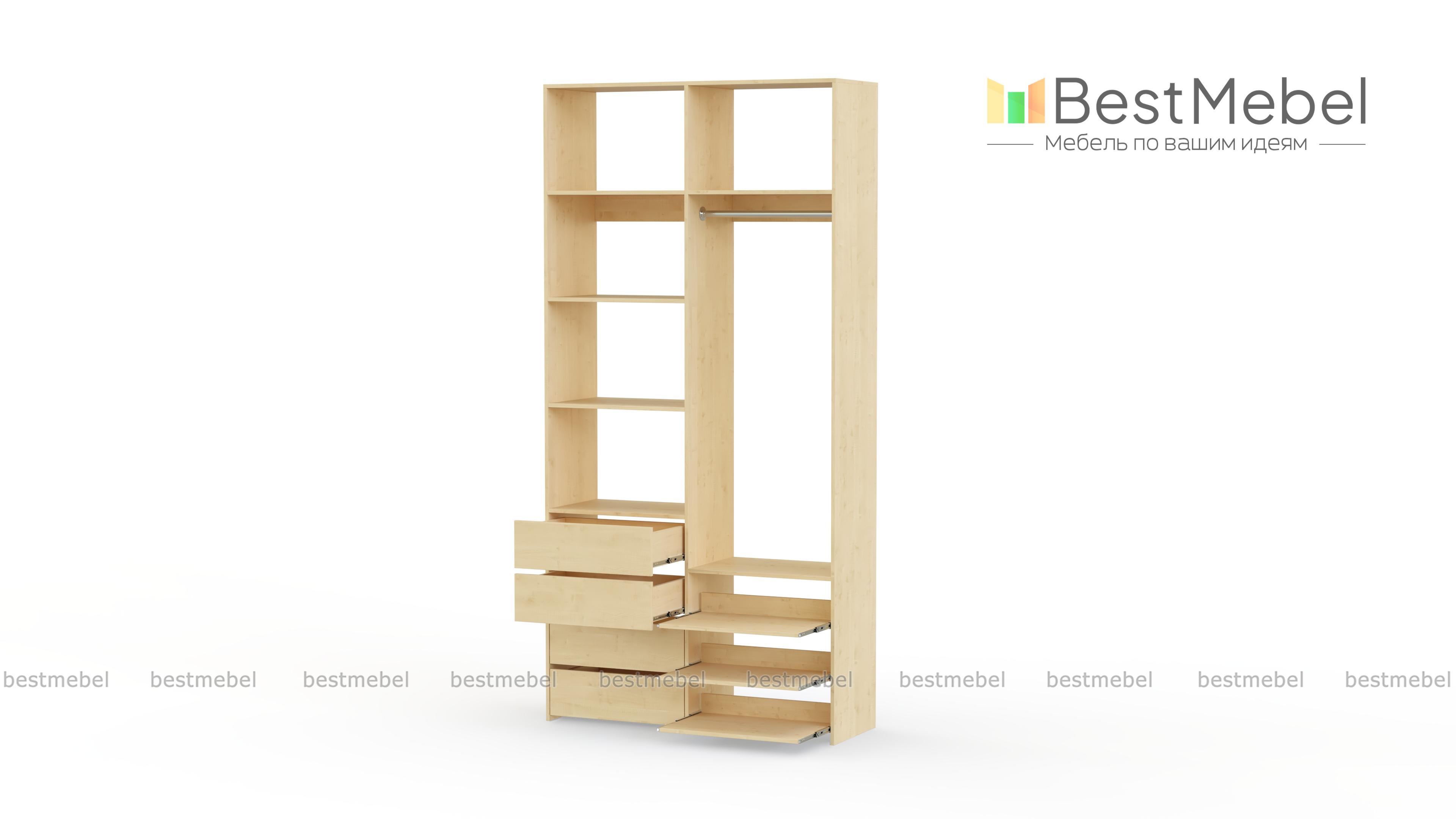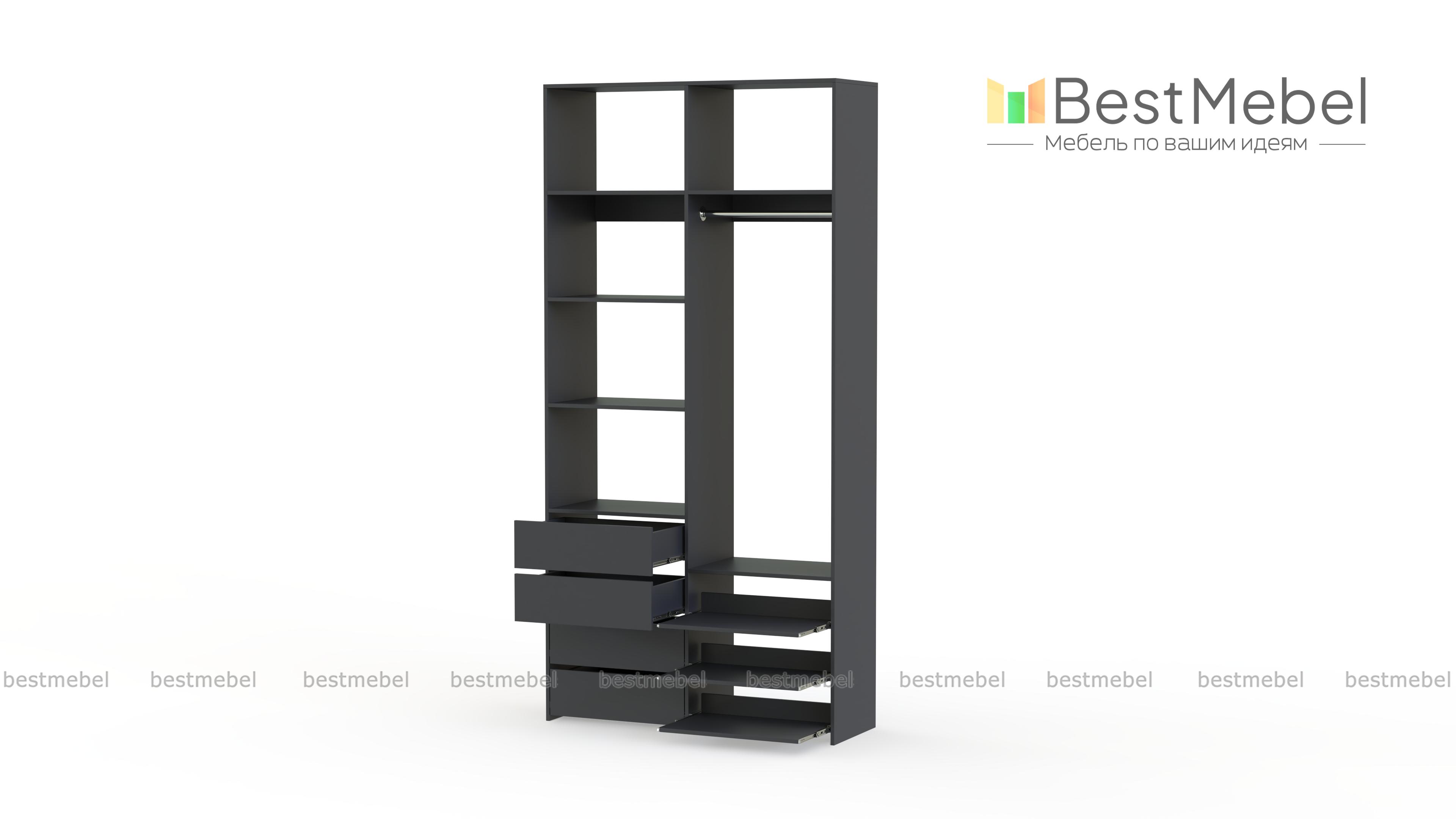 Стеллаж для одежды Мирта 87 BMS оптимален для небольших пространств. Штанга, выдвижные полки и ящики, а также пять просторных бельевых секций обеспечивают достаточно места для хранения базового гардероба. Простой и функциональный дизайн в сочетании с широкой цветовой гаммой позволяют легко комбинировать стеллаж с другой мебелью. Купить стеллаж для одежды Мирта 87 BMS с изготовлением по индивидуальным размерам вы сможете недорого в нашем интернет-магазине.