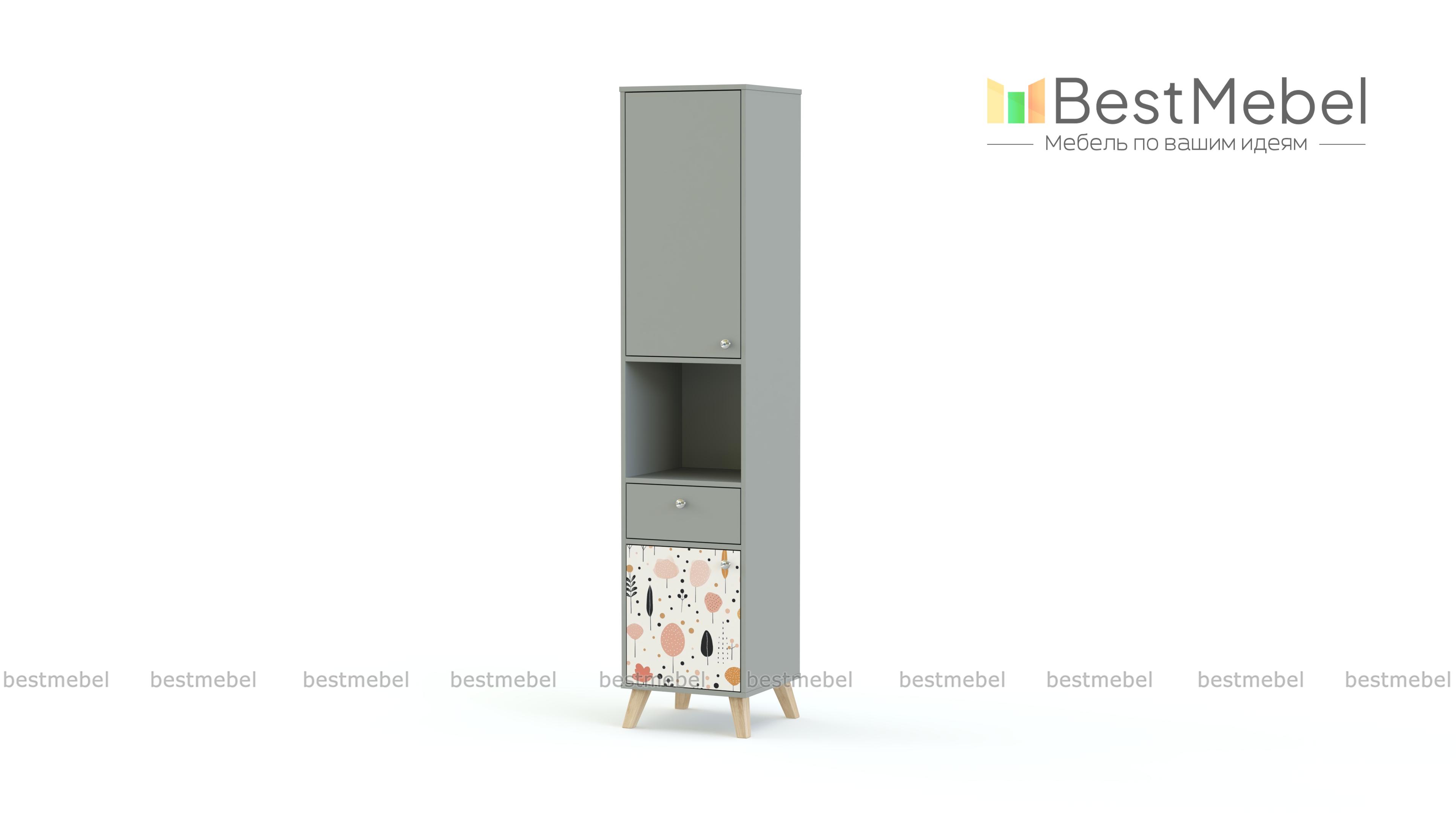 Стеллаж Эльза 2 BMS вместительный и занимает совсем мало места, экономя площадь детской. В нем есть просторная ниша для книг разного формата и ящичек под мелкие предметы, а также два закрытых дверцами отсека. Простая и надежная конструкция с высокими сканди-опорами сочетается с уютной природной фактурой ламинированной плиты и стильным принтом. Купить стеллаж Эльза 2 BMS вы сможете недорого в нашем интернет-магазине с выбором фурнитуры и цвета по каталогу.