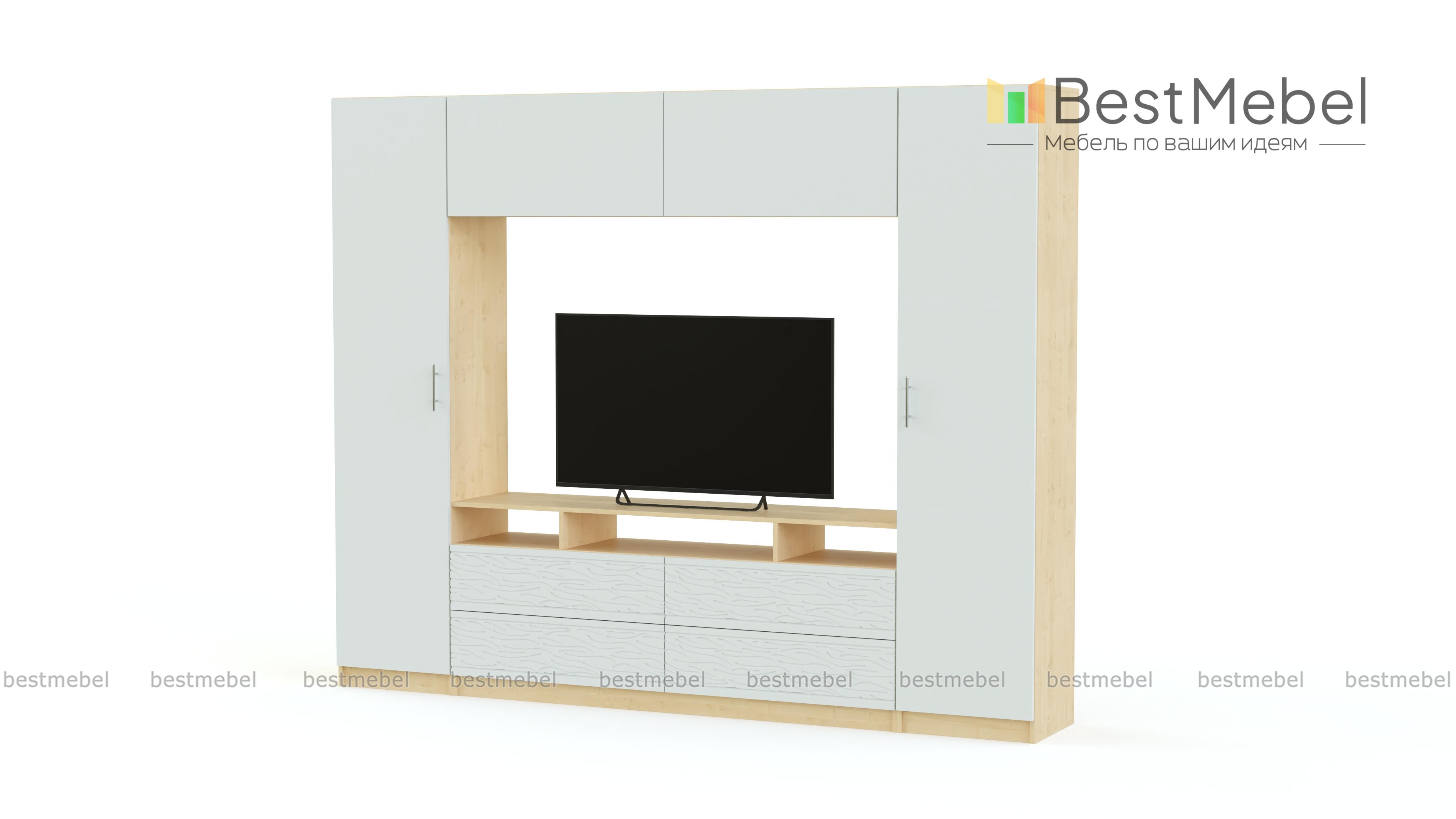 Стенка-горка Вельвет 8 Глянец BMS – лаконичный вариант для тех, кто предпочитает современные интерьеры в стиле минимализм и хай-тек. В единую композицию с нишей под ТВ в центре гармонично объединены колонки с полками, тумба и антресольная секция. Эффектные матовые фасады закруглены по краям и декорированы фантазийным рельефным рисунком, дверцы без ручек могут быть оснащены эргономичной системой открывания легким нажатием. Купить стенку-горку Вельвет 8 Глянец BMS вы сможете в нашем интернет-магазине, подобрав необходимые параметры.