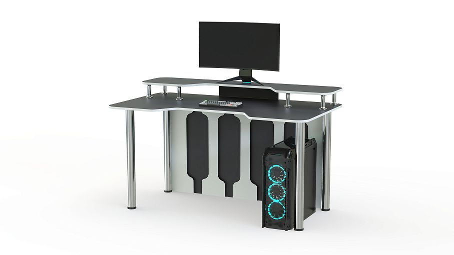 Игровой стол Персей тип 1 BMS, выполненный в черно-белой гамме, отличается креативным и функциональным дизайном. Просторная столешница имеет эргономичный вырез в передней части и дополнена надстройкой для размещения монитора и периферийных устройств. Устойчивость и внешнюю легкость придают конструкции регулируемые хромированные опоры и задняя стенка с декоративными вырезами. Купить игровой стол Персей тип 1 BMS приглашаем в наш интернет-магазин с выбором цвета по каталогу.