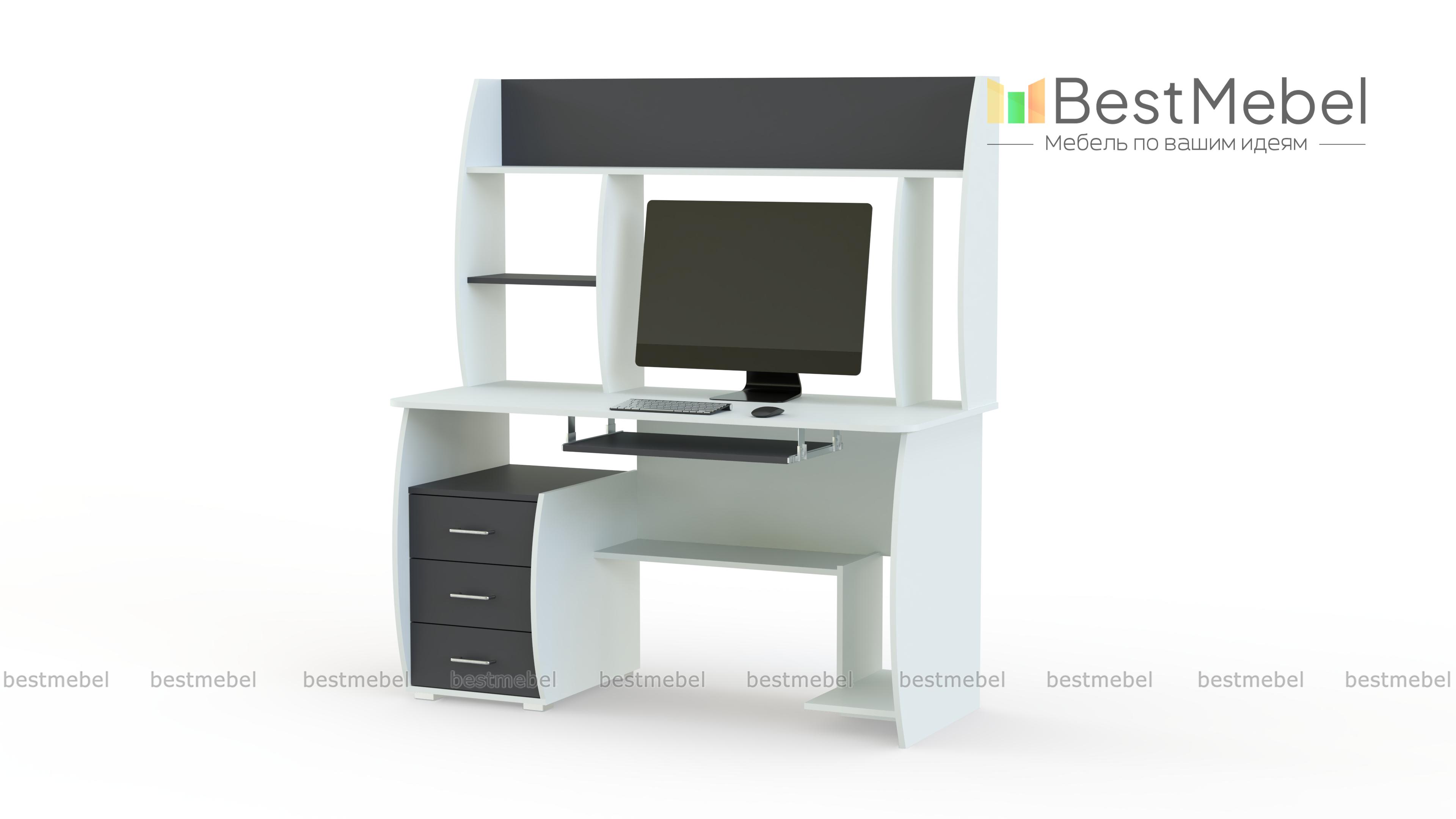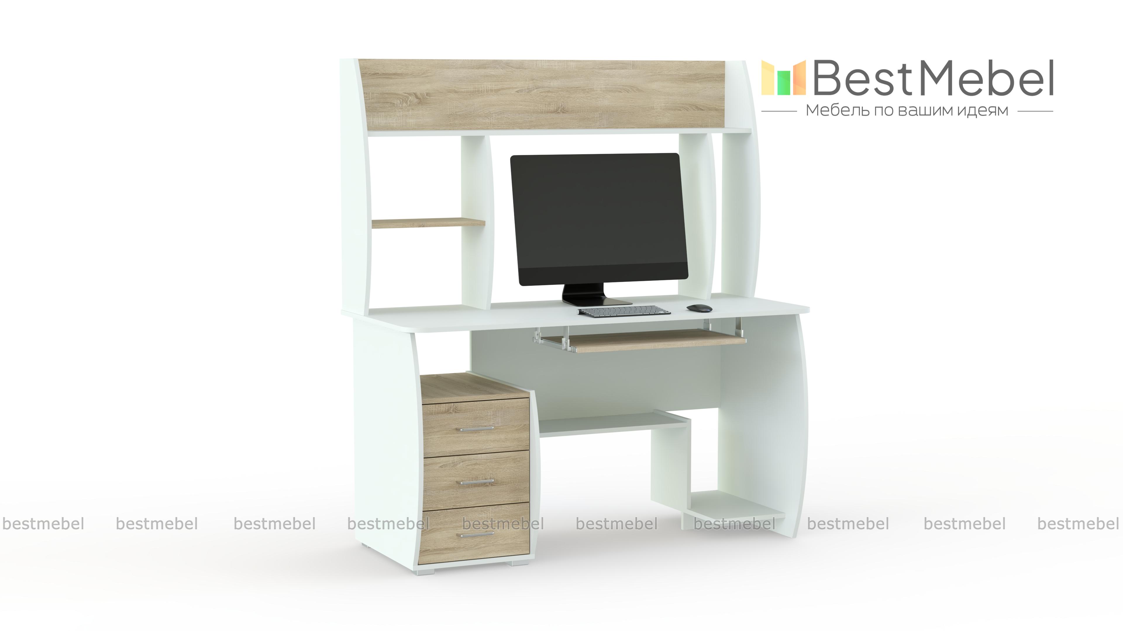 Компьютерный стол СК 16 BMS отличается функциональным и эргономичным дизайном. Конструкцией предусмотрены надстройка, позволяющая разместить рабочие материалы и сопутствующие аксессуары, а также полочка для клавиатуры, тумба с тремя выдвижными ящиками, нижняя полка и ниша под системный блок. Стильная особенность дизайна - чуть скругленные боковины и перегородки. Купить компьютерный стол СК 16 BMS вы сможете в нашем интернет-магазине, подобрав цвет и фурнитуру.