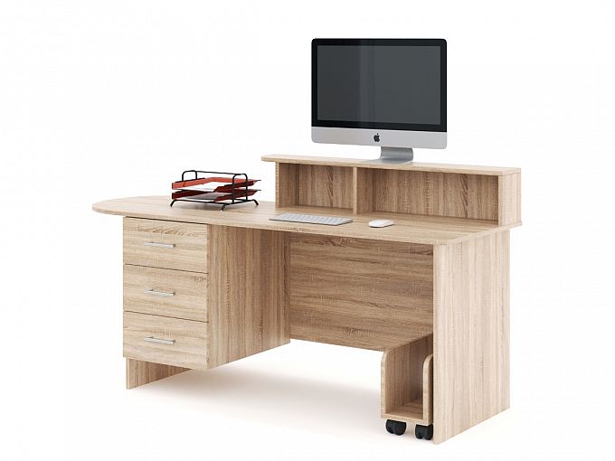 Письменный стол Акцент 4 BMS отличается современным дизайном, функциональностью и будет востребован в домашнем и офисном интерьере. Модель оборудована просторной столешницей эргономичной формы, тремя выдвижными ящиками для хранения мелочей, выкатной секцией под системный блок и надстройкой с полкой и нишами. Продуманная конструкция обеспечит комфортную работу за компьютером, а гармонично вписаться в меблировку поможет нейтральная расцветка в древесных тонах. Купить письменный стол Акцент 4 BMS приглашаем в наш интернет-магазин.