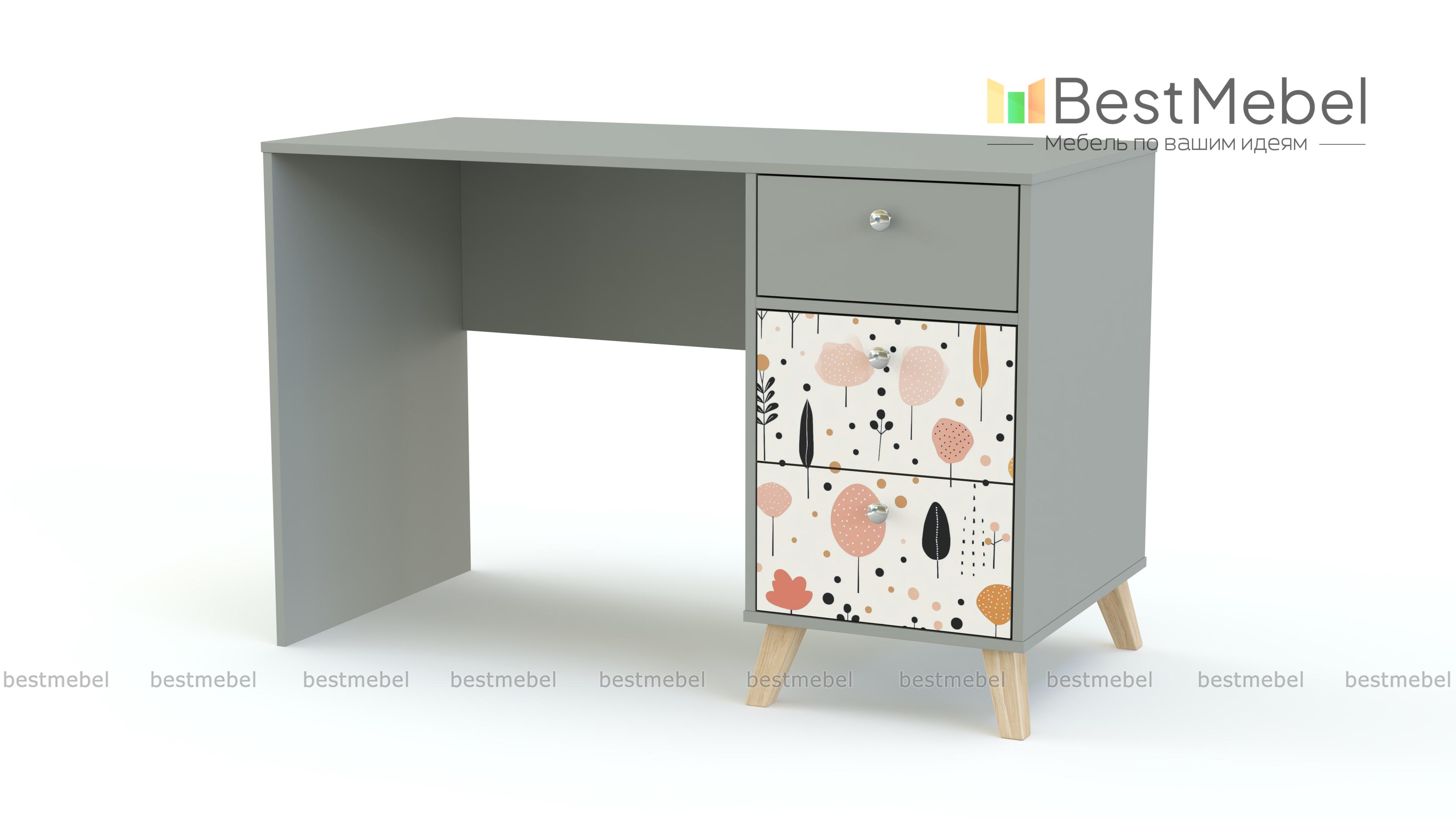 Стол письменный Эльза 5 BMS обеспечит комфортное положение во время учебы или занятий творчеством. Модель имеет просторную рабочую поверхность и тумбу с выдвижными ящиками для хранения под рукой канцелярских мелочей. Оборудованный высокими сканди-ножками и украшенный фотопечатью, стол гармонично впишется в современный детский интерьер. Купить стол письменный Эльза 5 BMS приглашаем в наш интернет-магазин с индивидуальным подбором цвета и размеров.