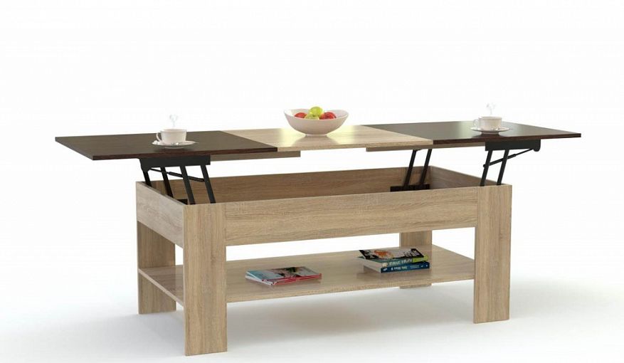 Стол журнальный Шафран 8 BMS, выполненный древесных тонах коричнево-бежевой гаммы, гармонично впишется в интерьер современной гостиной. Широкая низкая модель оборудована открытой нижней полкой и разместит книги, журналы, разнообразные мелочи и предметы декора. Вы легко сможете увеличить столик в высоту и ширину при помощи раздвижной столешницы с подъемным механизмом и использовать для сервировки обеда или работы. Купить стол журнальный Шафран 8 BMS приглашаем в наш интернет-магазин с возможностью изготовления по индивидуальным размерам.