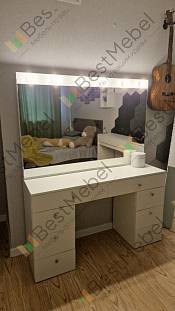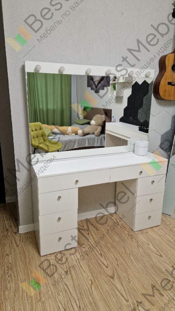 Туалетный столик Лацио 5 BMS выполнен в белоснежном глянце и отличается эффектным минимализмом. Практичная современная модель обеспечит комфортный уход за собой и разместит в зоне быстрого доступа все необходимые мелочи. Оптимальный для нанесения макияжа, столик оборудован широкой столешницей, под которой располагаются выдвижные ящики разных размеров, и большим зеркалом с лампочками. Купить туалетный столик Лацио 5 BMS вы сможете в нашем интернет-магазине по лучшей цене.