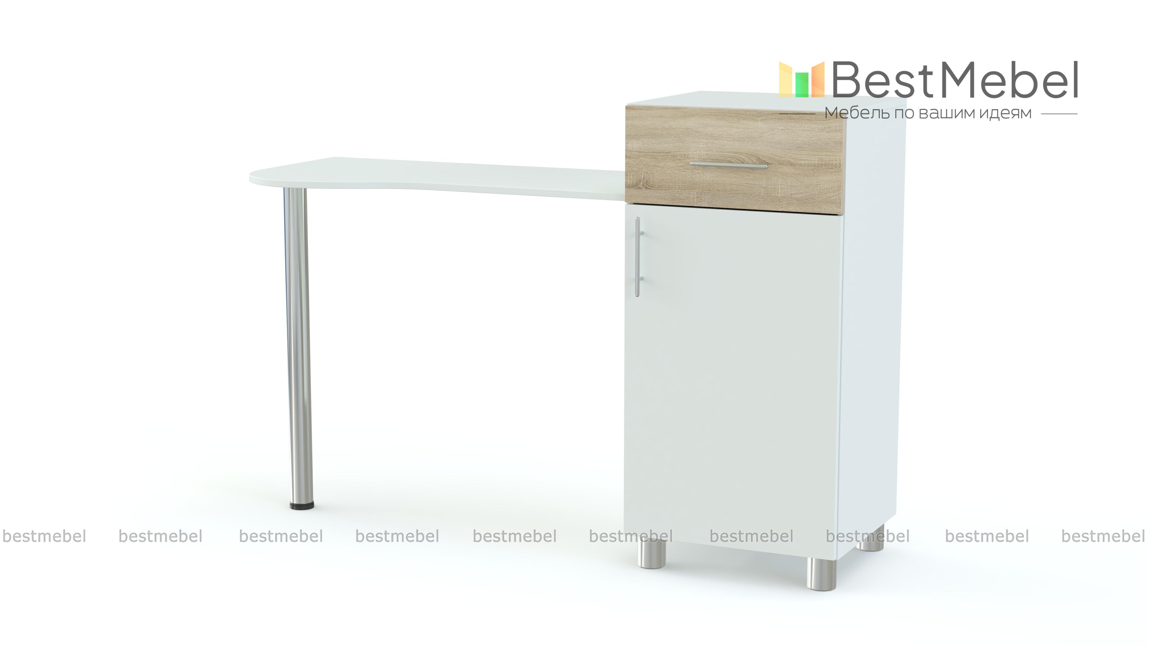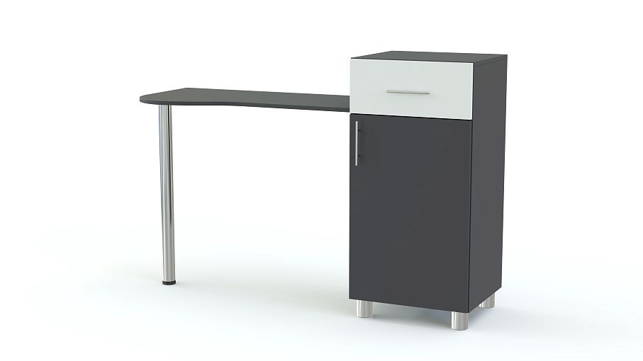 Туалетный столик Мелисса СТ 114 BMS станет приятным дополнением интерьера современной спальни. Конструкция представляет собой комбинацию изящной столешницы с эргономичным передним краем и вместительной тумбы. Оборудованная выдвижным ящиком и распашным отделением с полкой, тумба позволит хранить под рукой все необходимые аксессуары и уходовые средства. Стильные элементы дизайна – фасады и хромированные опоры. Купить туалетный столик Мелисса СТ 114 BMS вы сможете недорого в нашем интернет-магазине, подобрав цветовое решение.