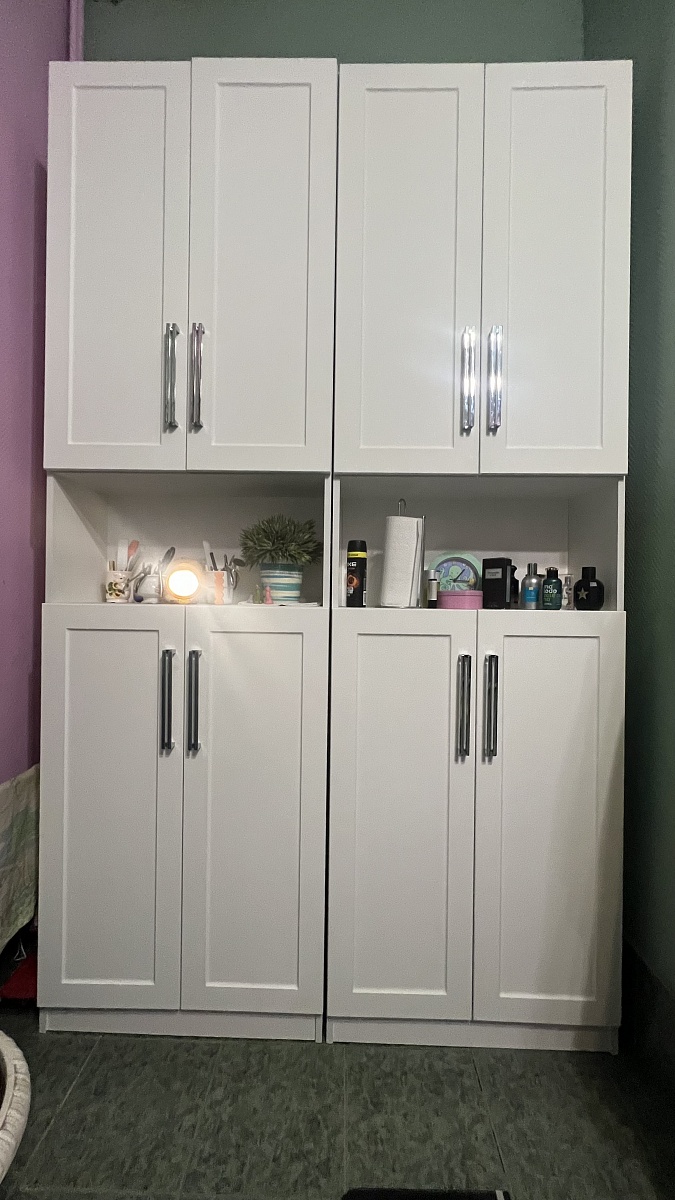 Хороший шкаф. Полностью соответствует описанию. Собирается легко, Выглядит стильно. Из минус: когда начали собирать оказалось, что на левой стенке оказался скол в верху. Лучше полностью проверять, когда привозят