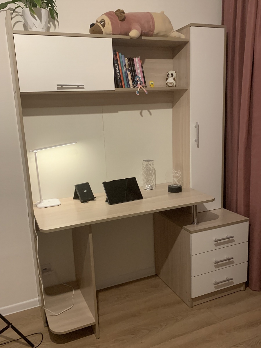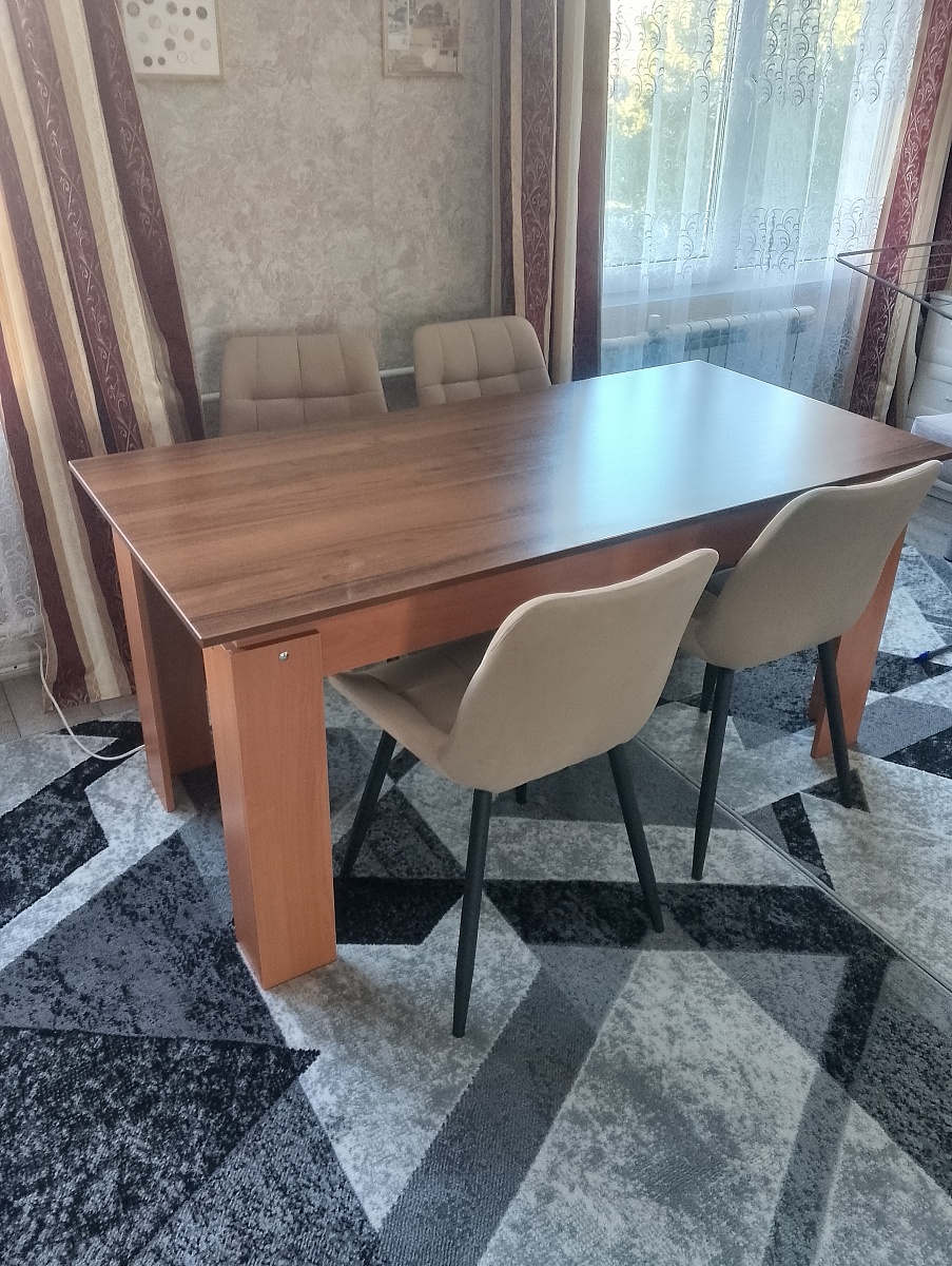 Стол как стол. Выглядит хорошо, свою функцию исполняет. Из минусов: в конструкции ОЧЕНЬ плохо продумано крепление ножек. Они на хлипких саморезах еле-еле держит. Купил мебельные болты и прикрепил на них и теперь не боюсь, что это развалиться