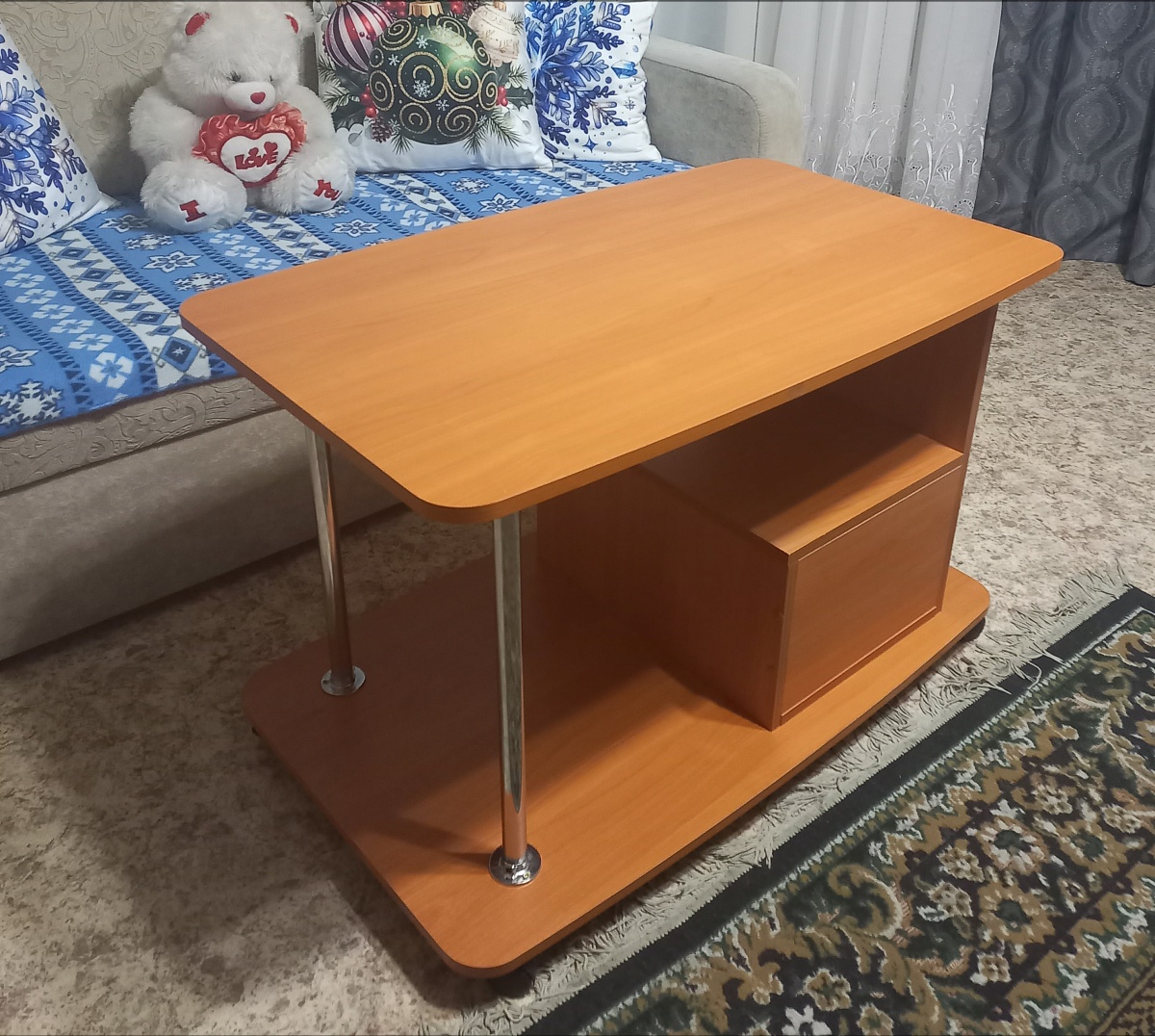 Заказ 00000252127, Угловой письменный стол для двоих Канзас 34 BMSЗаказывали этот стол для детской комнаты. Искали именно угловую модель, чтобы у каждого ребёнка было свое рабочее место. По ширине стол идеально вписался в размеры комнаты.Плюсы:Длина столешницы более 1,7 метра . Это очень удобно. Дети не мешают друг другу, свободно размещают учебники, канцелярию, у каждого теперь своя полка и по два отдельных ящика. Конфликтов из-за места теперь нет + в комнате стало легко поддерживать порядок.Качество сборки и материалы. Стол приехал в надежной упаковке, все детали были целы. Собирали по инструкции, процесс стандартный. Фасад тумб и столешница выглядят аккуратно, заявленного цвета «венге/дуб сонома».Угловая форма позволяет каждому сидеть в удобном положении.Отличное соотношение цены и качества.Недостаток: качество кромки на столешнице. Этот недостаток легко устраняется покупкой кромки на маркетплейсе за копейки. Запах ДСП держится какое-то время, но со временем проходит.Итог: Стол «Канзас-34» — нам идеально подошёл. Комфортно, уютно, удобно и со вкусом. Рекомендую.