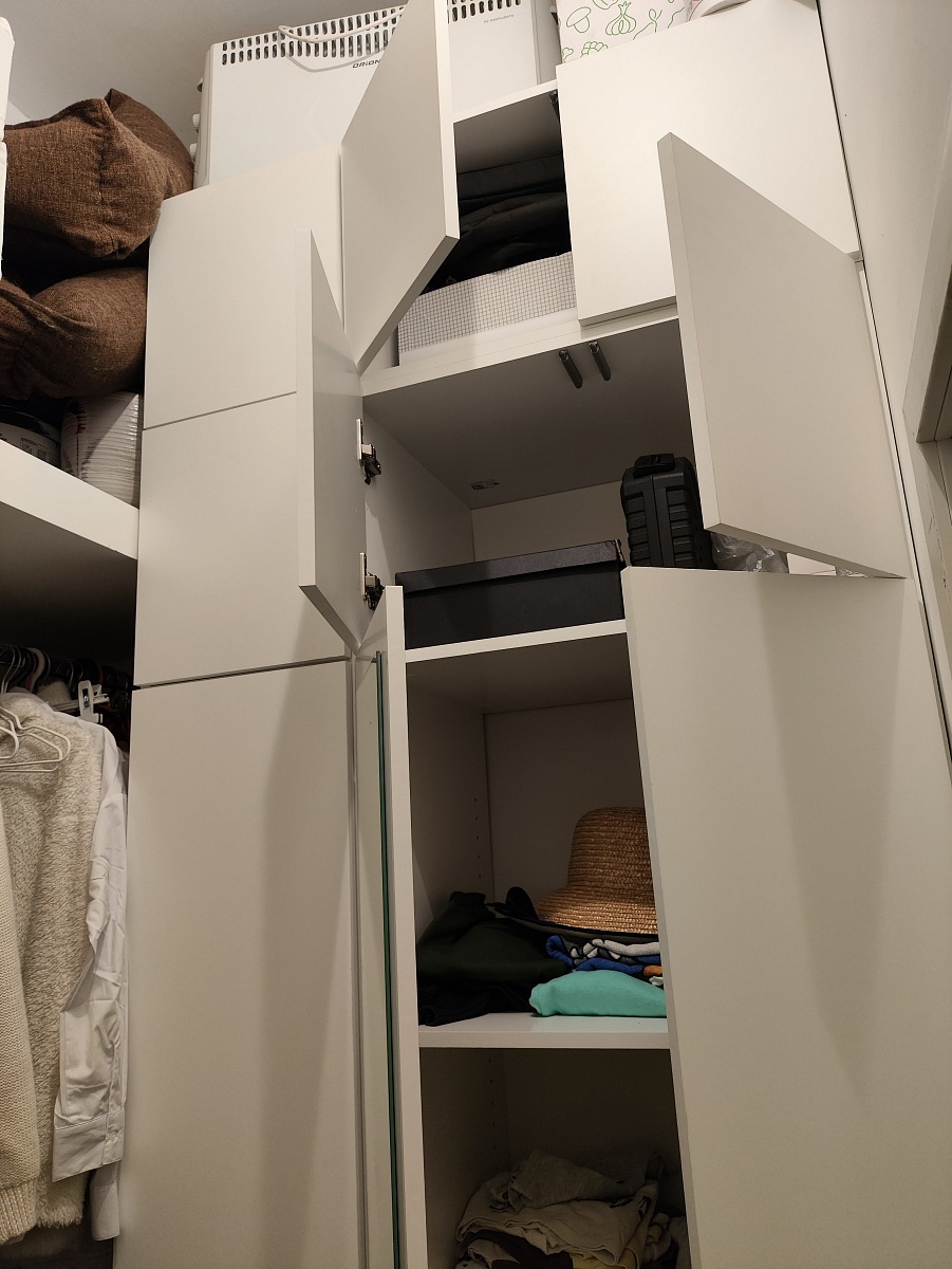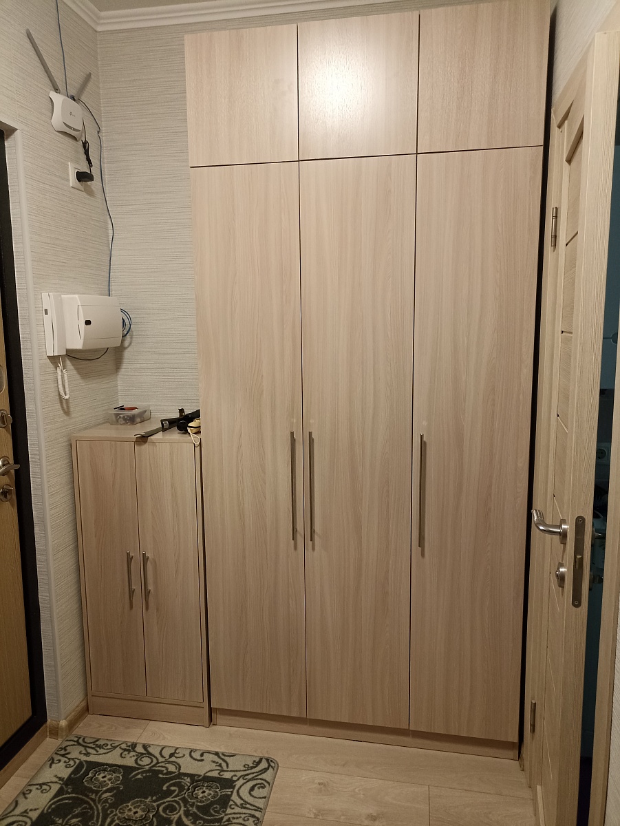 Шкаф порадовал, смотрится солидно. Есть возможность по своему усмотрению изменить конфигурацию: добавили зеркало и дополнительные полки, изменили ручки, изменили размеры. Думали будут проблемы из-за сборки в стеснённых условиях, но мастер за 3 часа все собрал на отлично. Заказ 00000133736